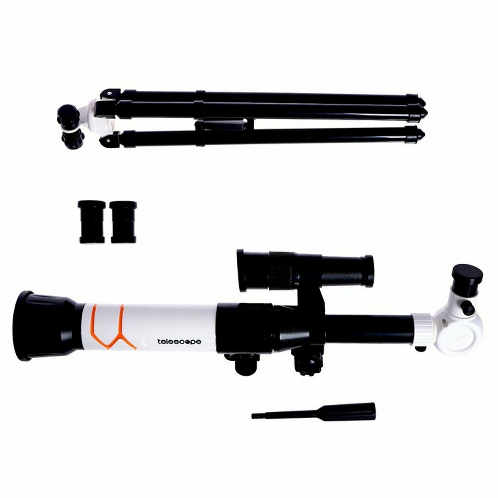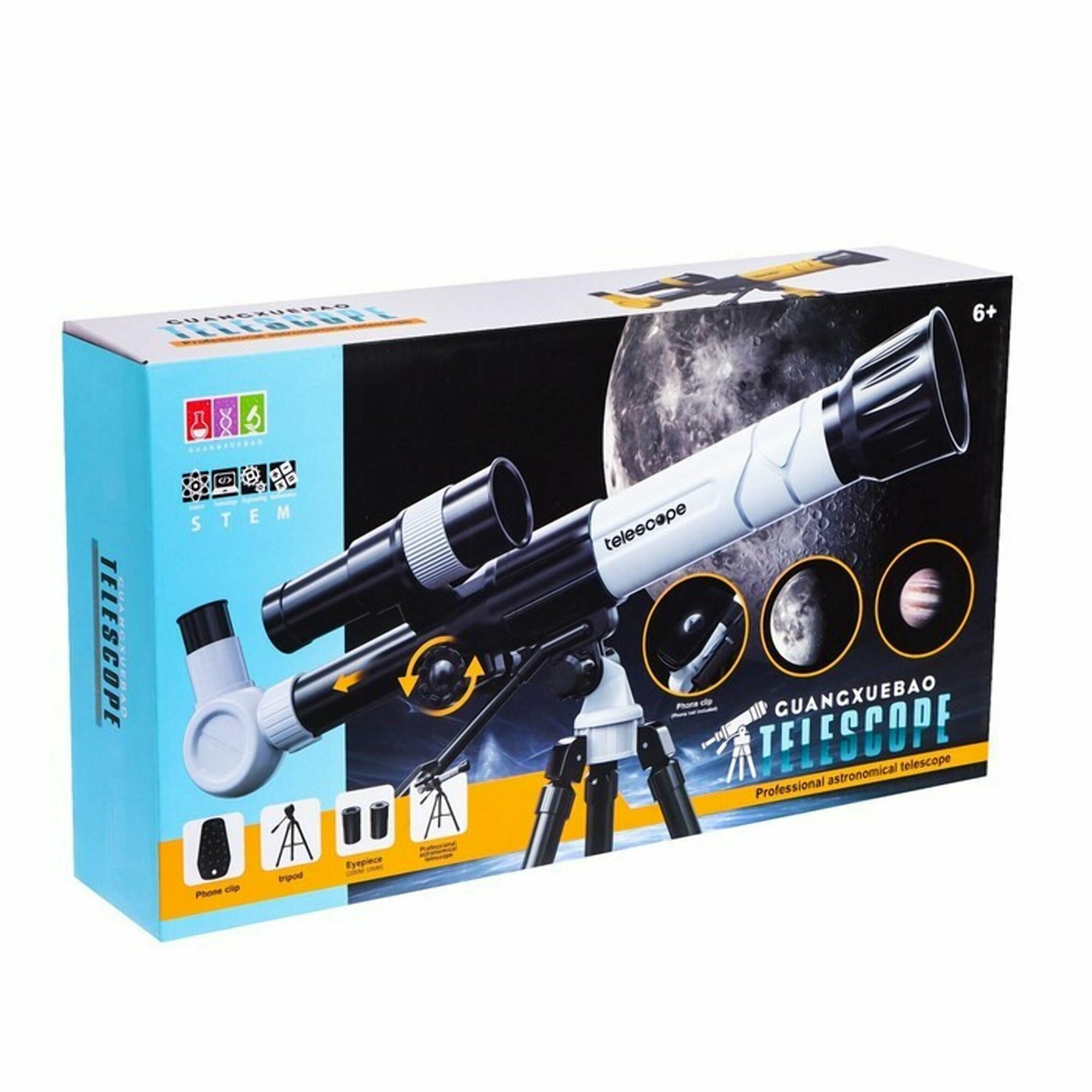 Купить Рефракционный астрономический детский телескоп Юный астроном на штативе, с держателем для телефона, цвет белый, кратность увеличения 20х, 30х, 40х / Развивающие игрушки / Подарок