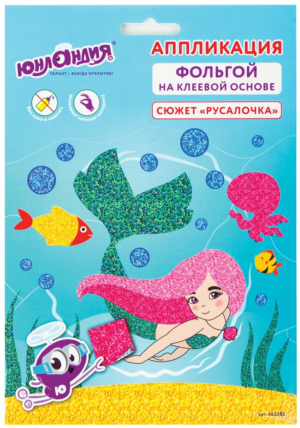 Набор для творчества Аппликация из фольги, Русалочка, самоклеящаяся основа 20х15 см, Юнландия, 662382 интересное: