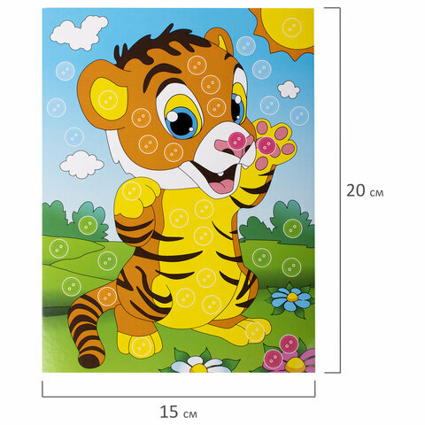 Набор для творчества "Аппликация из пуговиц", "Тигрёнок", основа 20х15 см, юнландия, 662396 интересное: