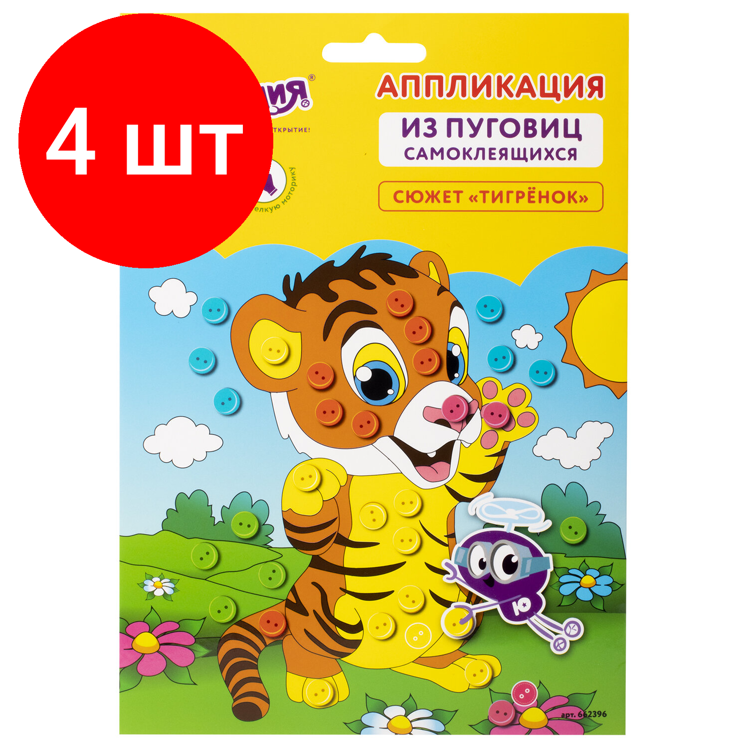 Комплект 4 шт, Набор для творчества "Аппликация из пуговиц", "Тигрёнок", основа 20х15 см, юнландия, 662396 интересное: