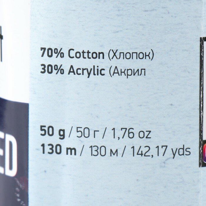 Пряжа для вязания YarnArt 'Denim Washed' 50г, 130м (70% хлопок, 30% акрил) (910 синий), 10 мотков