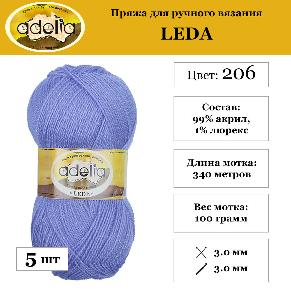 Купить Пряжа Adelia "LEDA" 99% акрил, 1% люрекс №206 голубой - 5 мотков по 100 г