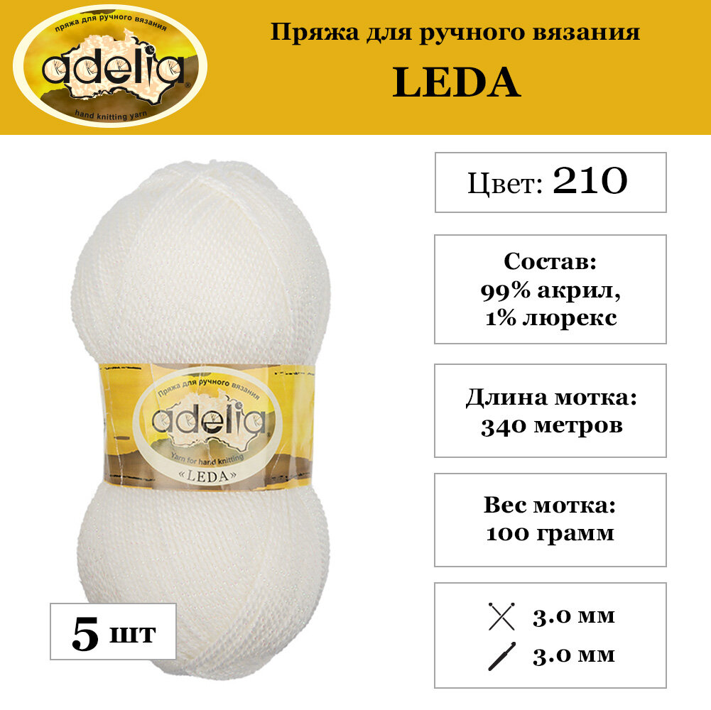 Купить Пряжа Adelia "LEDA" 99% акрил, 1% люрекс №210 белый - 5 мотков по 100 г