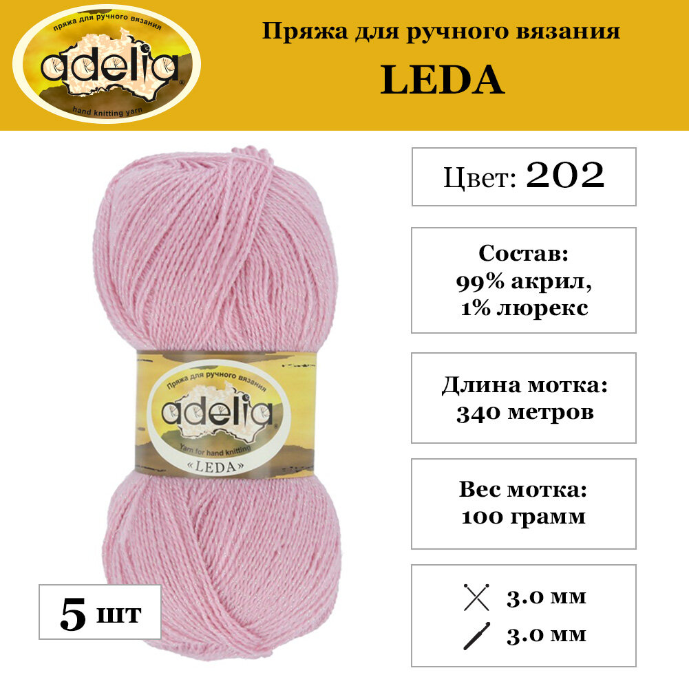 Пряжа ADELIA "LEDA" 99% акрил, 1% люрекс 5 шт. х 100 г 340 м +- 8 м №202 розовый