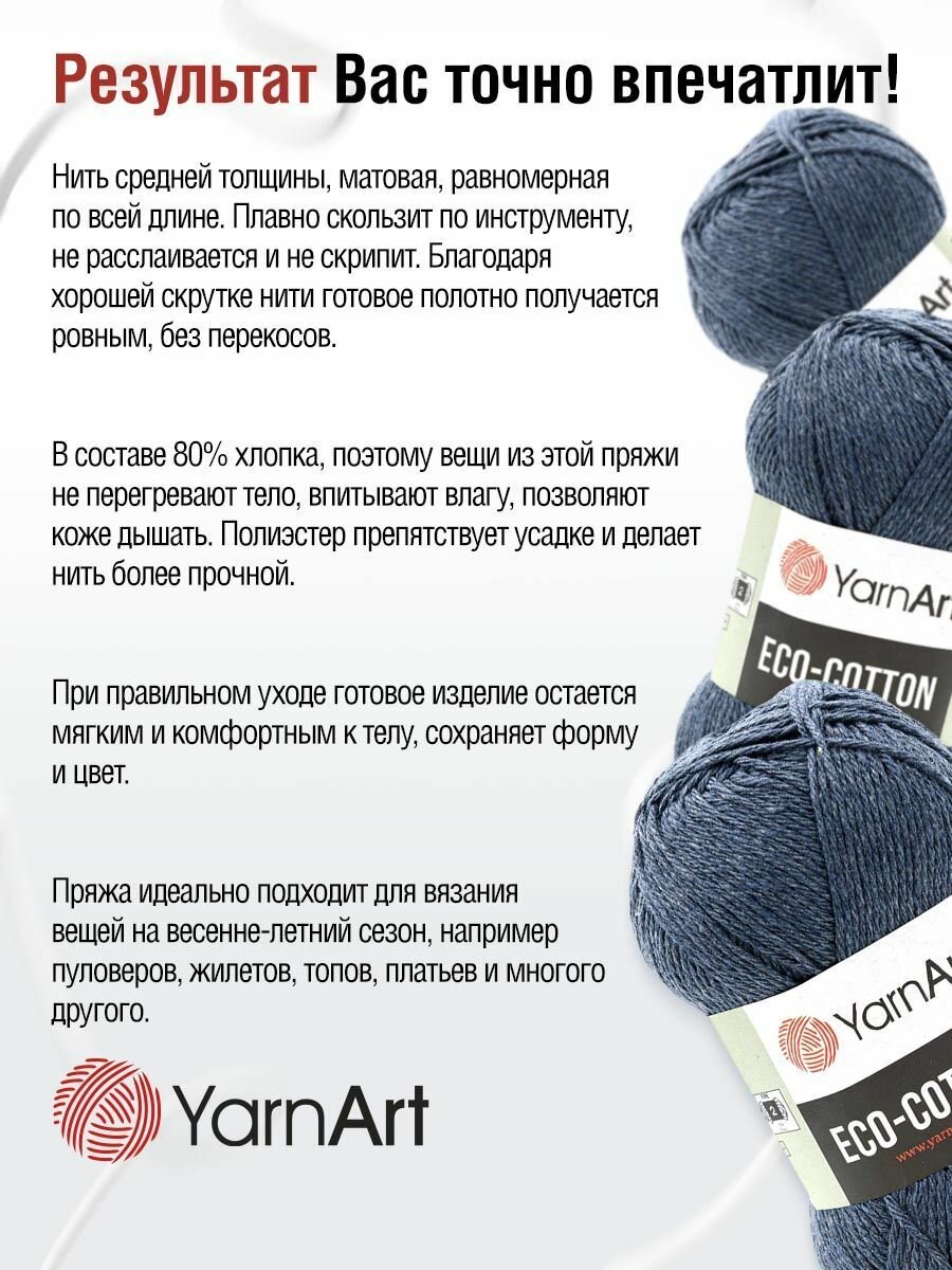 СохранитьПряжа YarnArt Eco Cotton комфортная для летних вещей 100 г 220 м 773 джинс 5 мотков интересное: