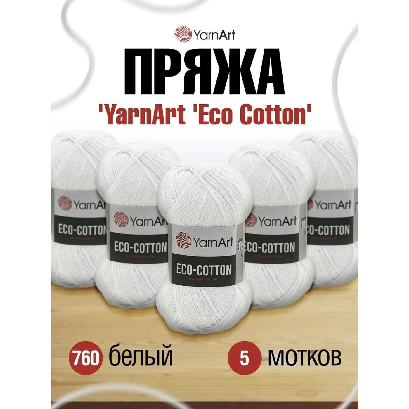 Пряжа 5 шт YarnArt Eco Cotton белый (760)