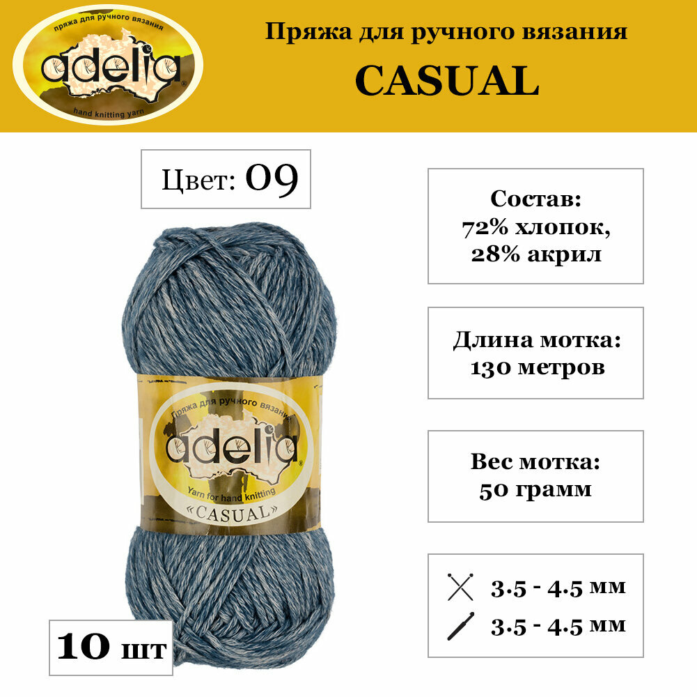 Купить Пряжа Adelia "CASUAL" 10 шт. по 50 г. набор, 72% хлопок, 28% акрил, 130 м. №09 синий