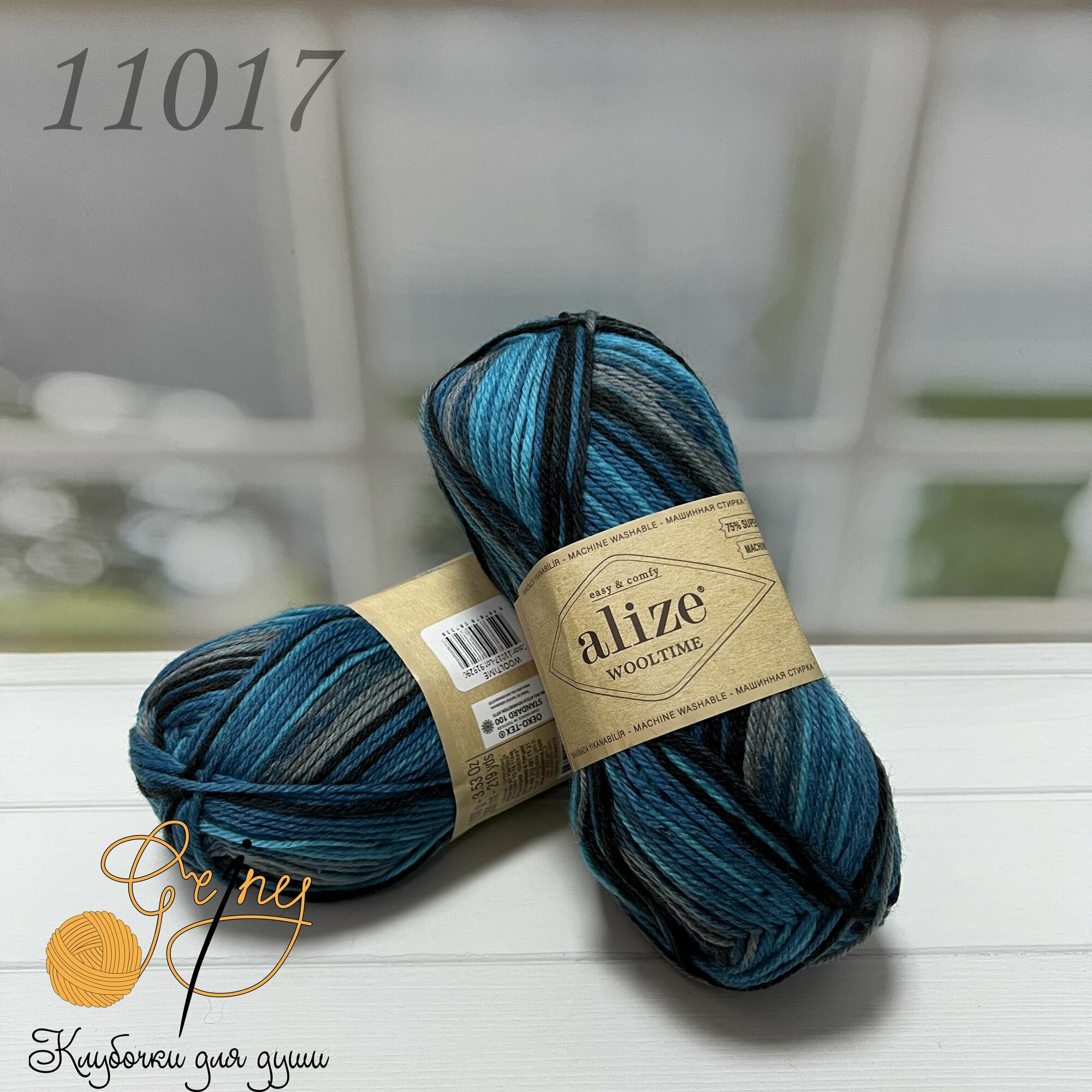 Пряжа Alize Wooltime принт черный-серый-синий (11011), 75%шерсть/25%полиамид, 200м, 100г, 2шт