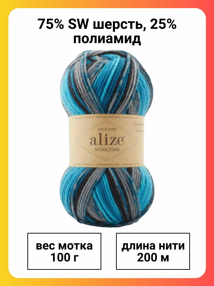 Пряжа Wooltime, Alize, принт - 11018, 75% SW шерсть, 25% полиамид, 5 мотков, 100 г., 200 м.