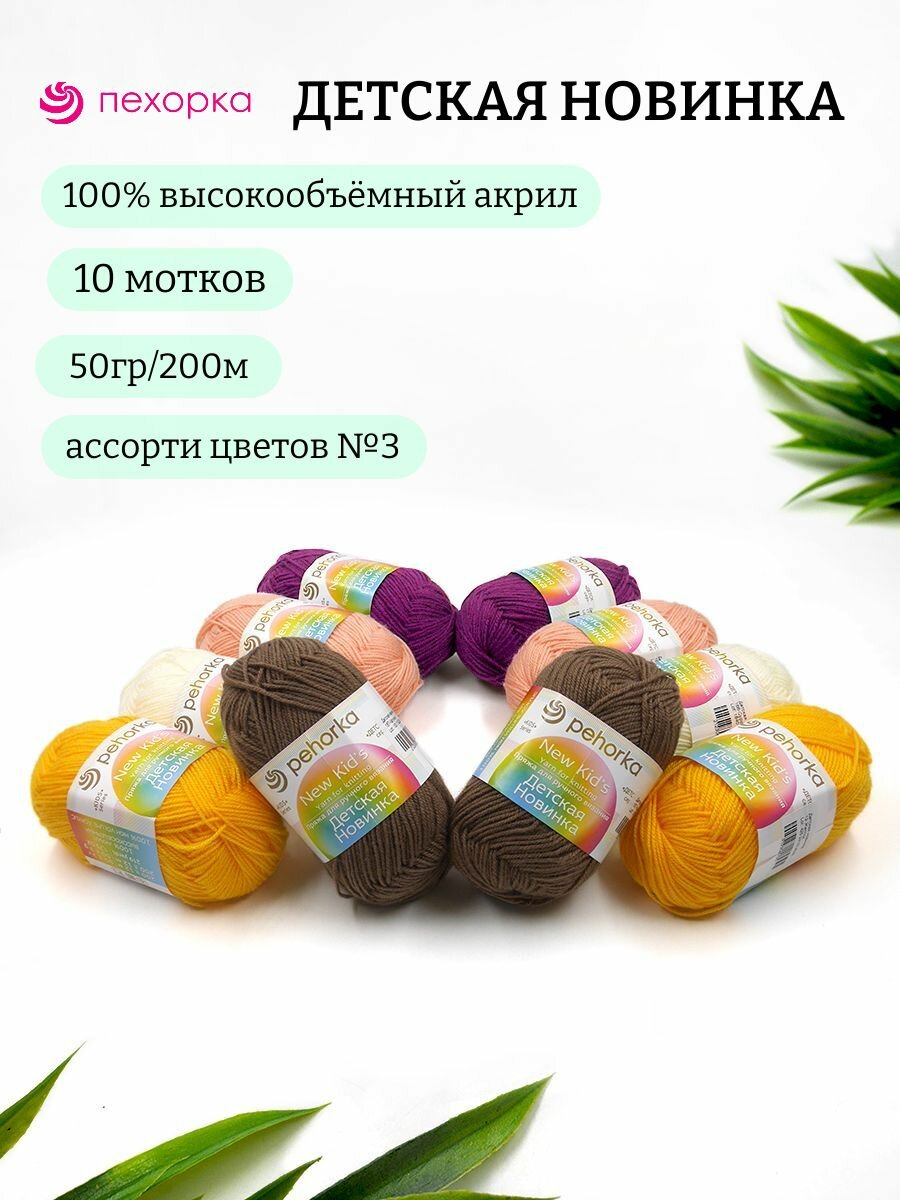 Купить Пряжа для вязания Детская новинка ассорти №3 100% высокобъемный акрил 50г 200м 10шт