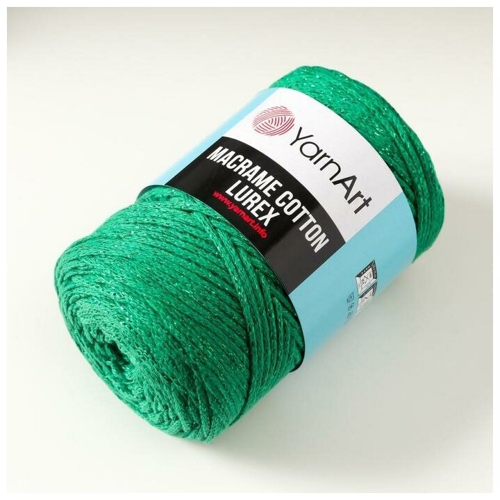 Купить Пряжа YarnArt Macrame cotton lurex зеленый-зеленый (728), 75%хлопок/13%полиэстер/12%металлик, 205м, 250г, 1шт