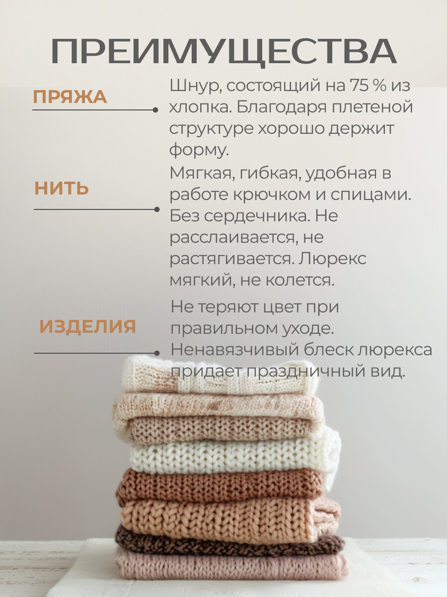 | Особенности пряжи | пряжа-шнурок / с люрексом |