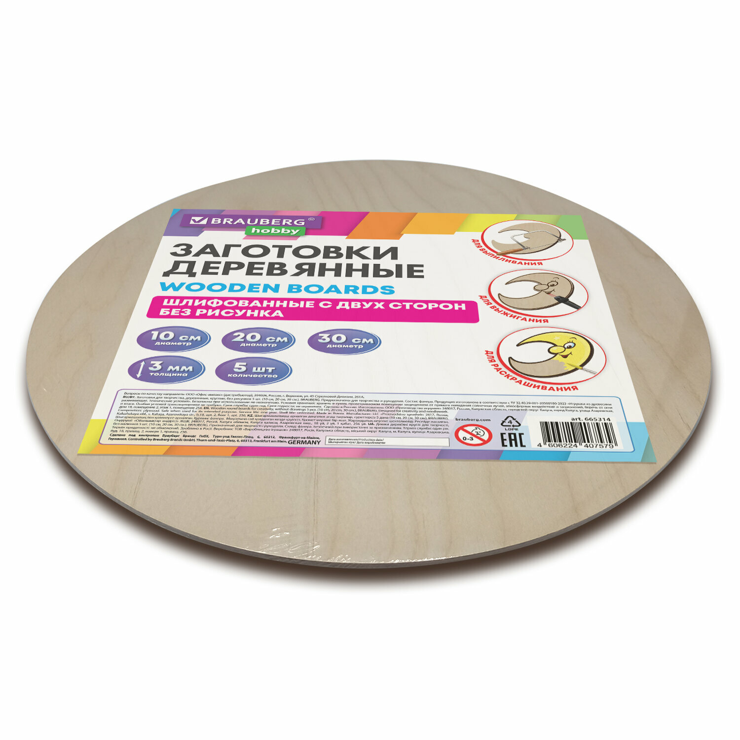 Доски для выжигания по дереву, дощечки деревянные круглые для творчества 5 штук, диаметр: 10-20-30 см, Brauberg Hobby, 665314 интересное: