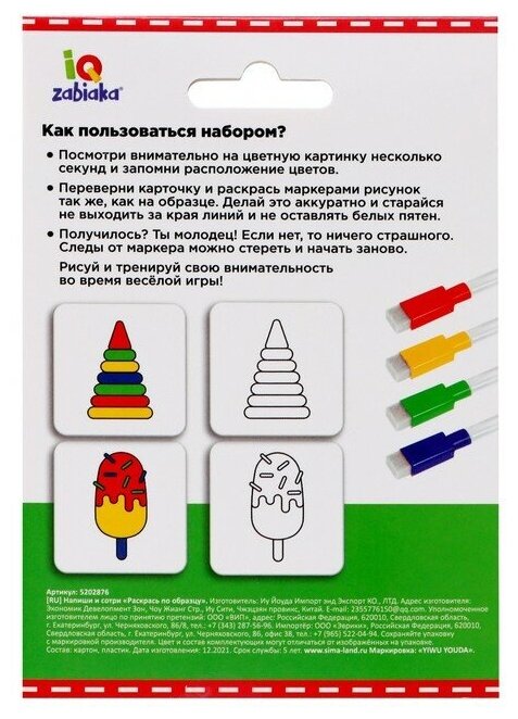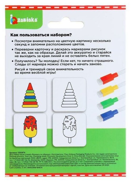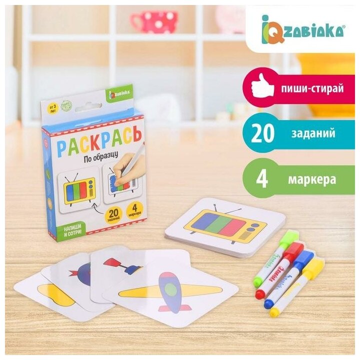 Набор пиши-стирай, ZABIAKA, "Раскрась по образцу", 20 заданий интересное: