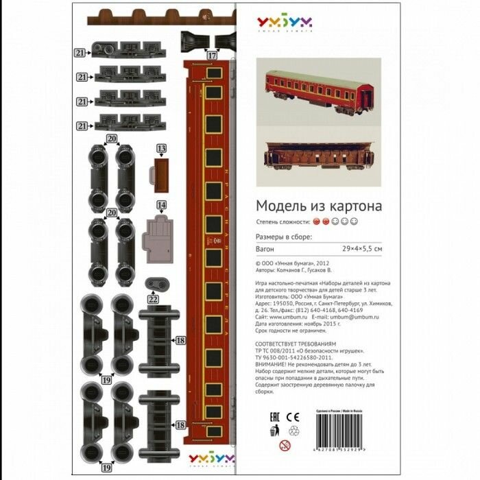 Сборная модель из картона Умная бумага 3D пазл Спальный вагон "красная стрела" интересное: