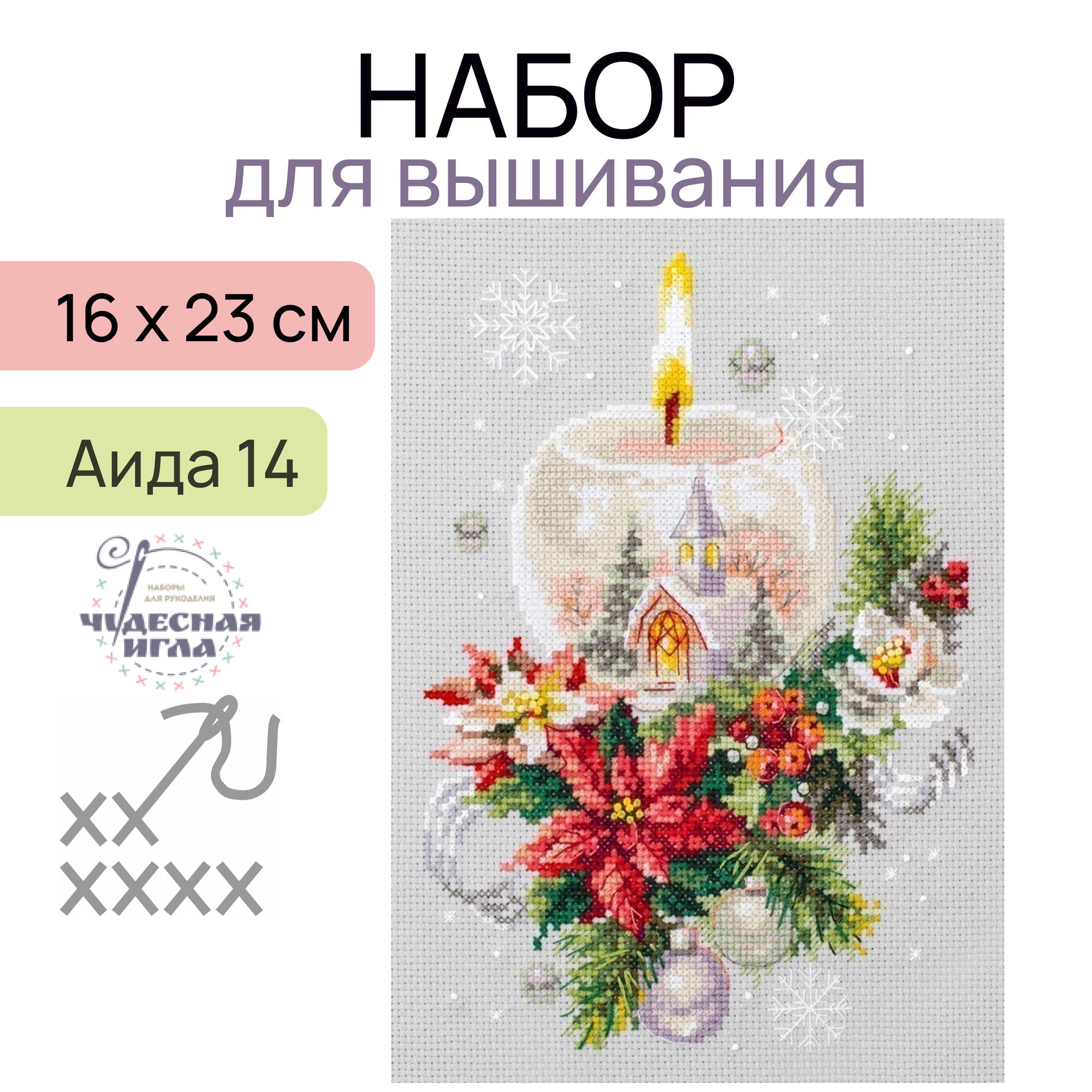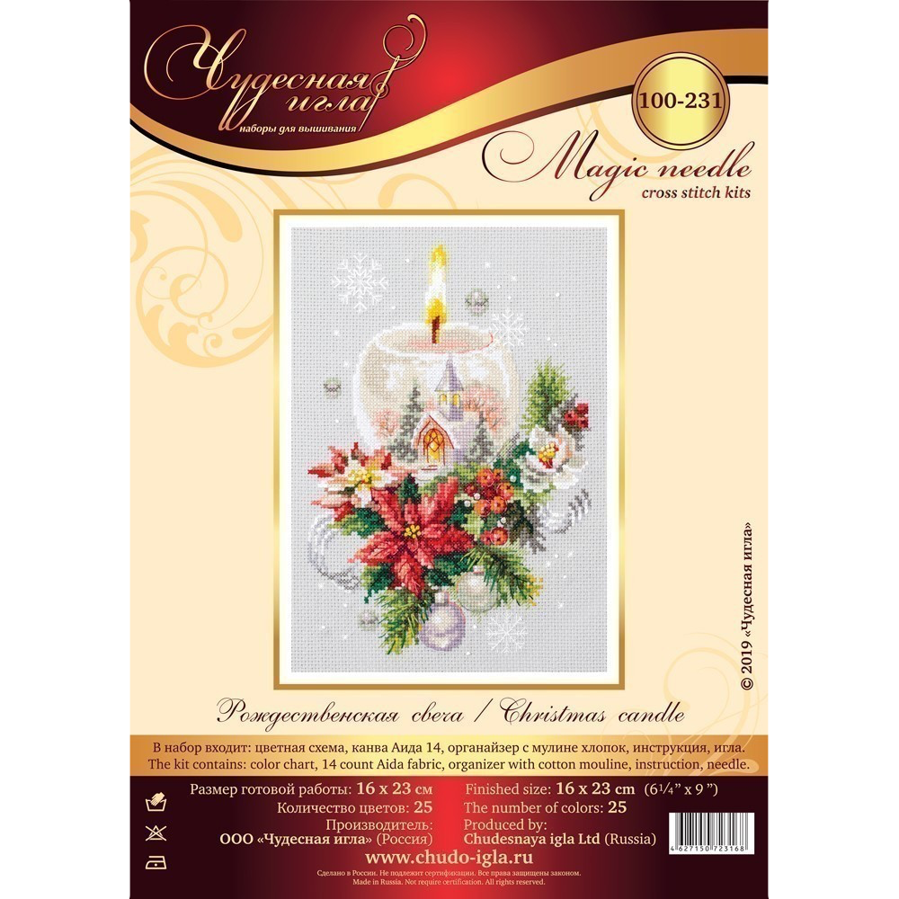 100-231 Набор для вышивания Чудесная игла 'Рождественская свеча'16х23см интересное: