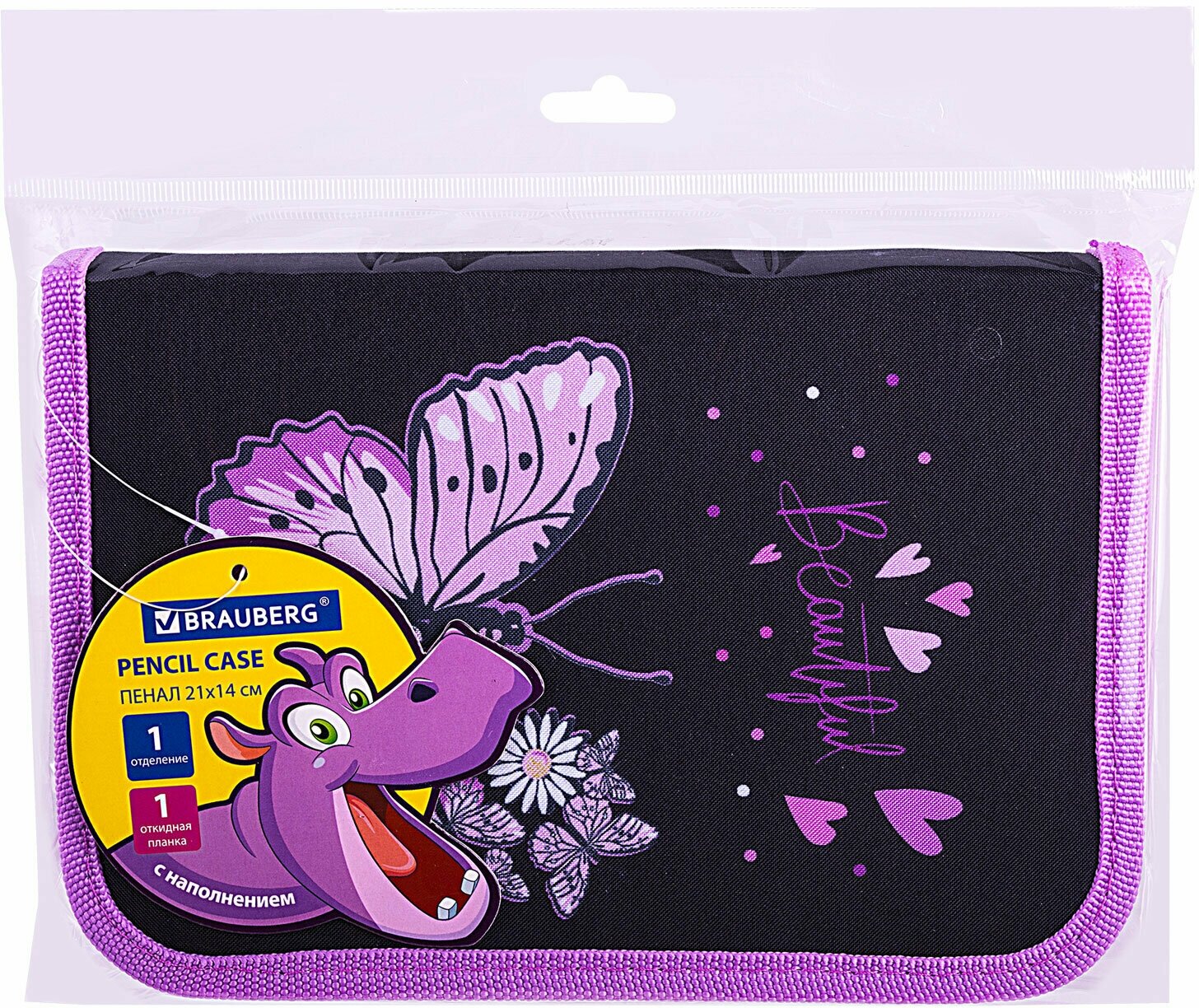 Купить Пенал школьный с наполнением для ручек, карандашей для девочки / подростка Brauberg 1 отделение, откидная планка, 24 предмета, 21х14см, 271524