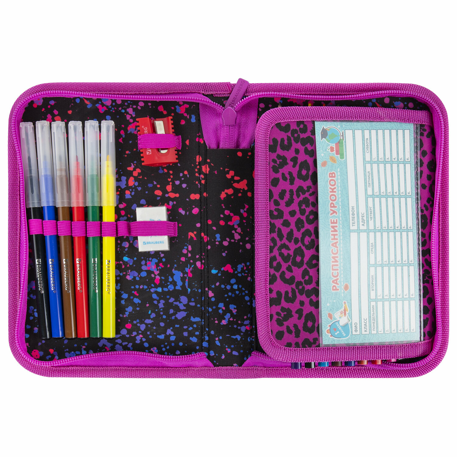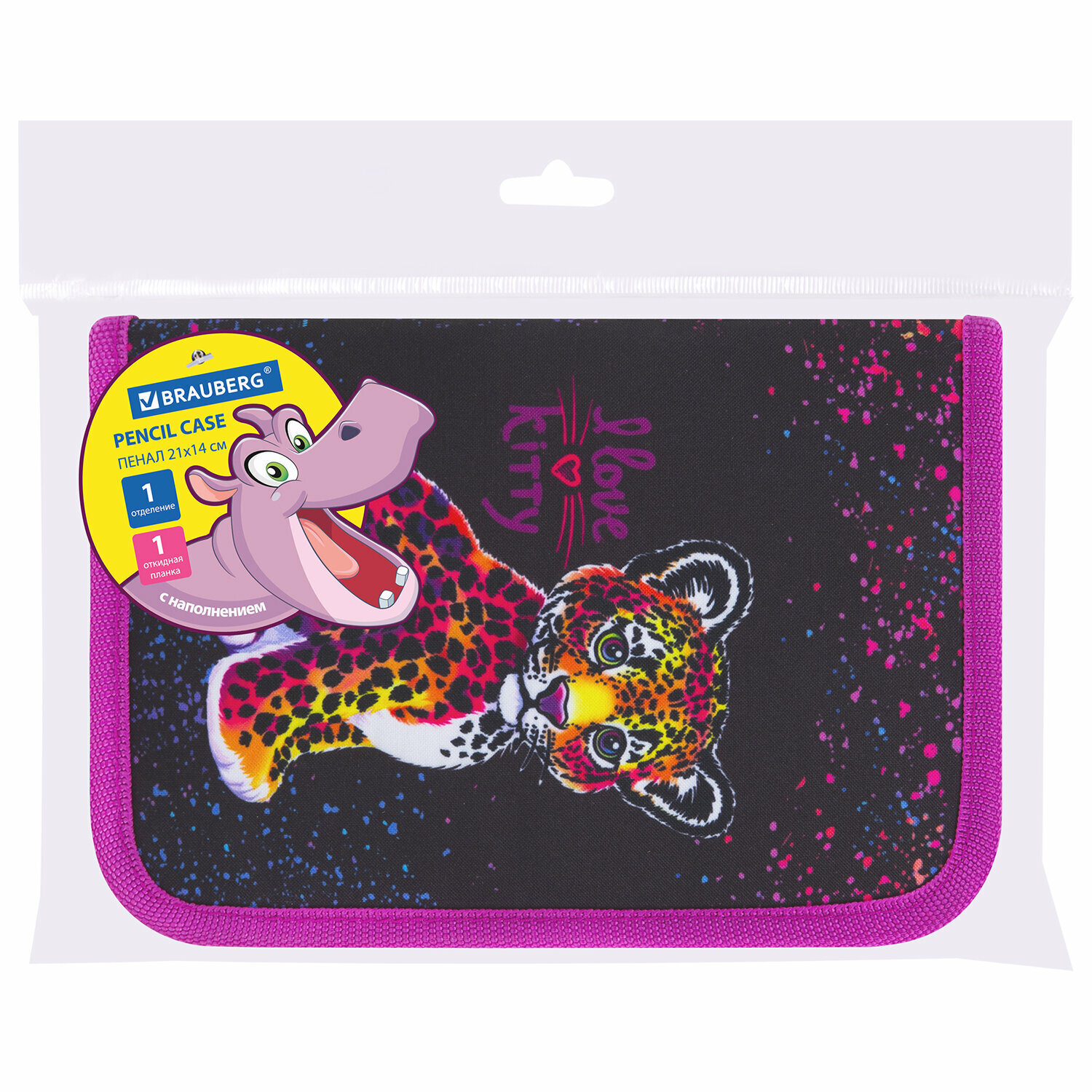 Купить Пенал Brauberg с наполнением, 1 отделение, 1 откидная планка, 24 предмета, 21х14 см, Leopard, 272350