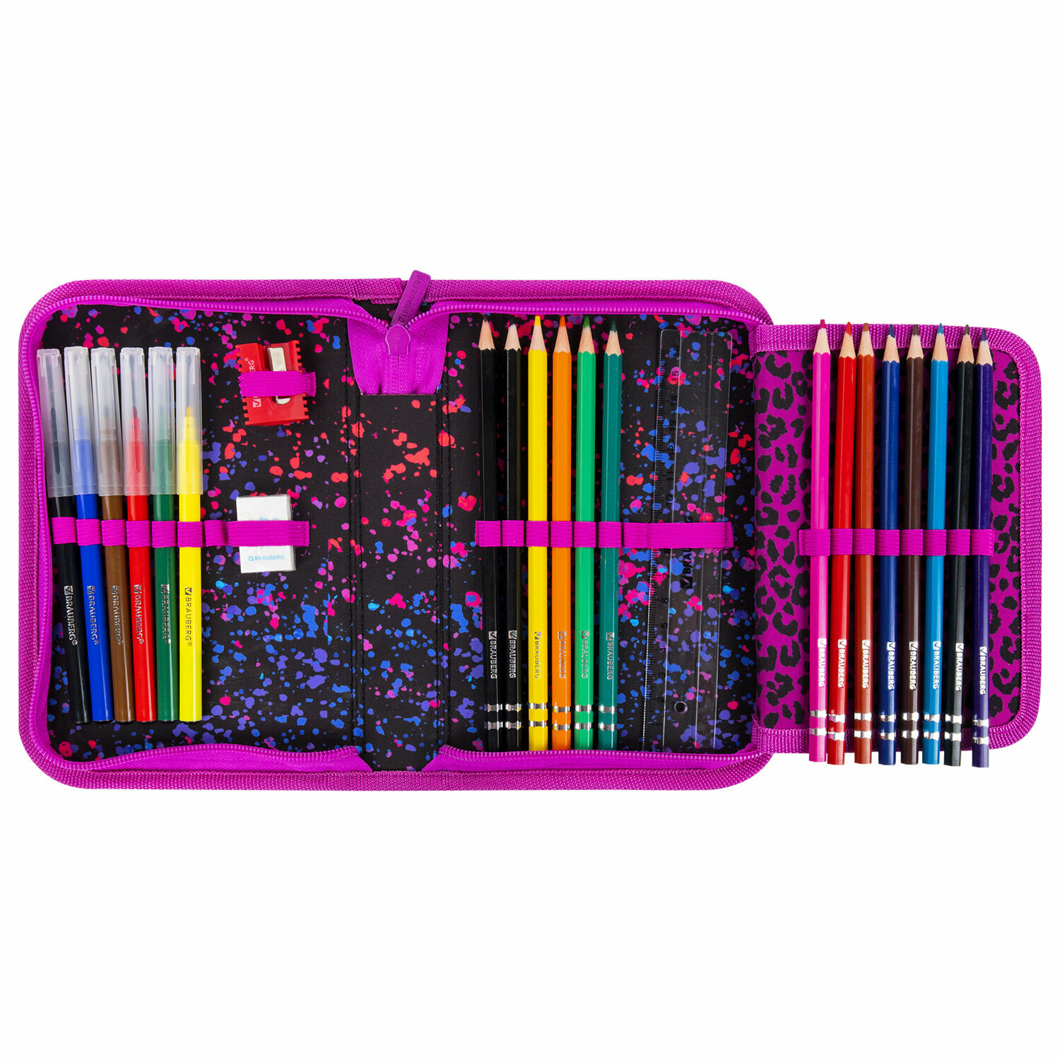 Пенал школьный с наполнением для ручек, карандашей для девочки / подростка Brauberg 1 отделение, откидная планка, 24 предмета, 21х14см, 271523