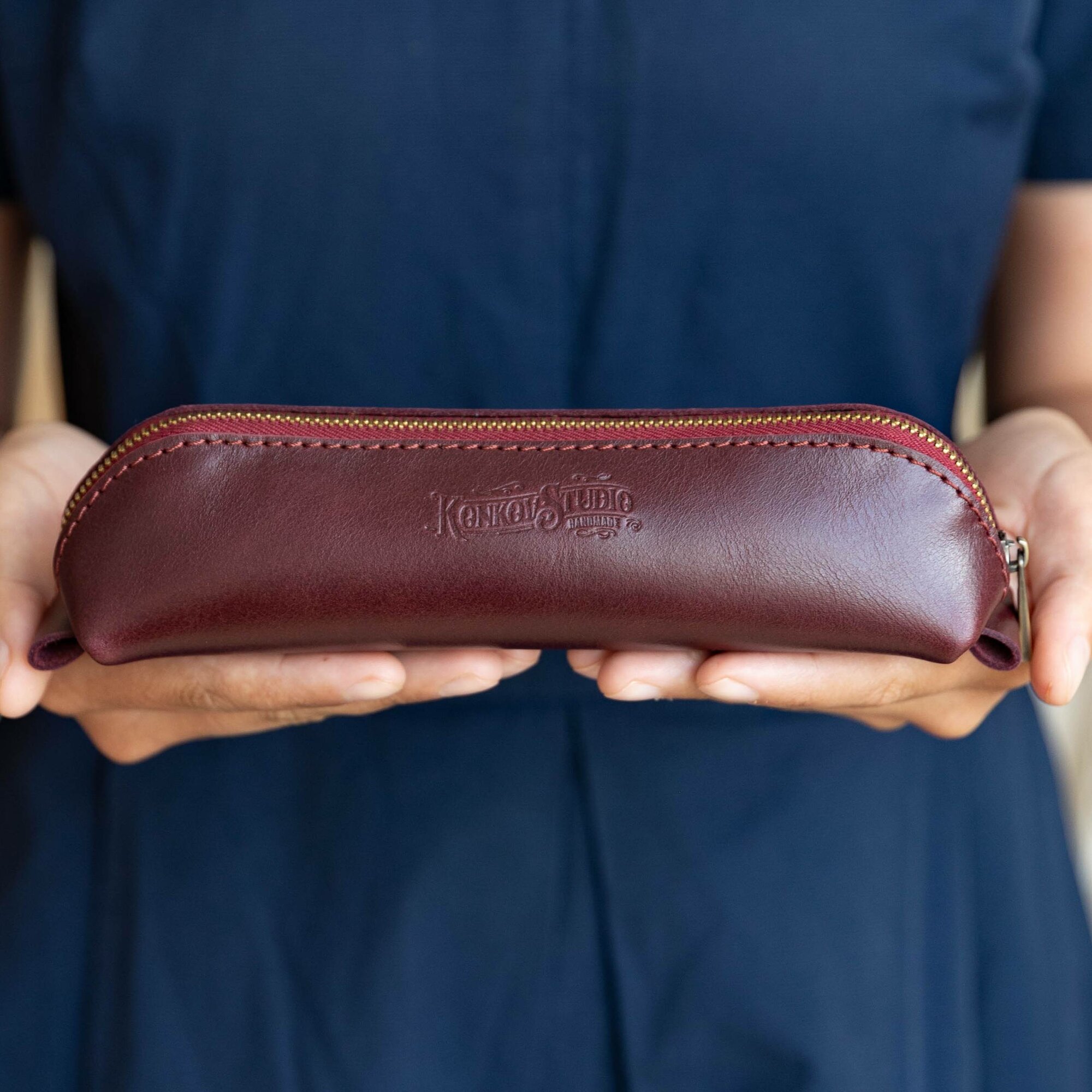 Купить Пенал для карандашей и очков из натуральной кожи (Бордовый)