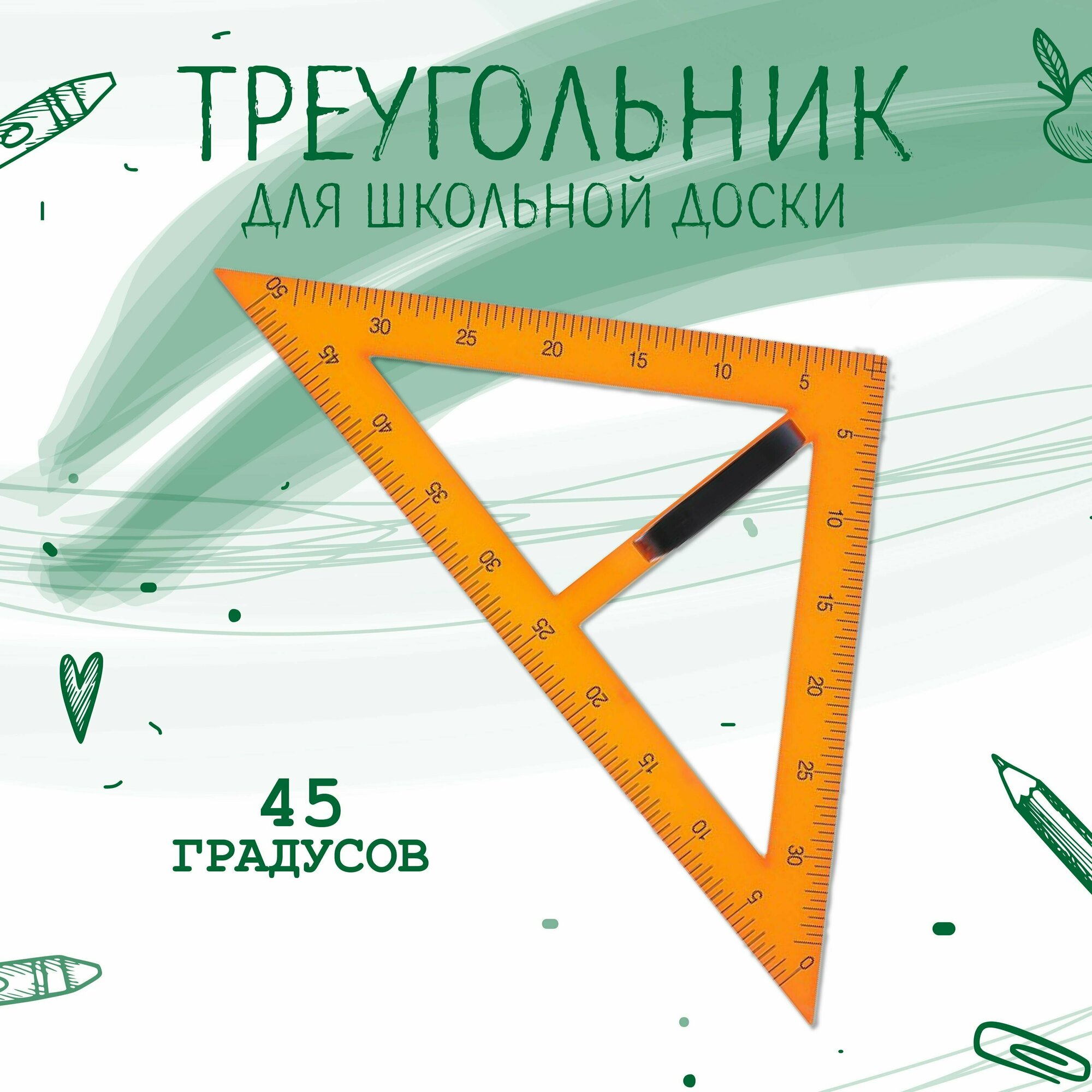 Треугольник для школьной доски, с держателем, прямоугольный, 45° интересное: