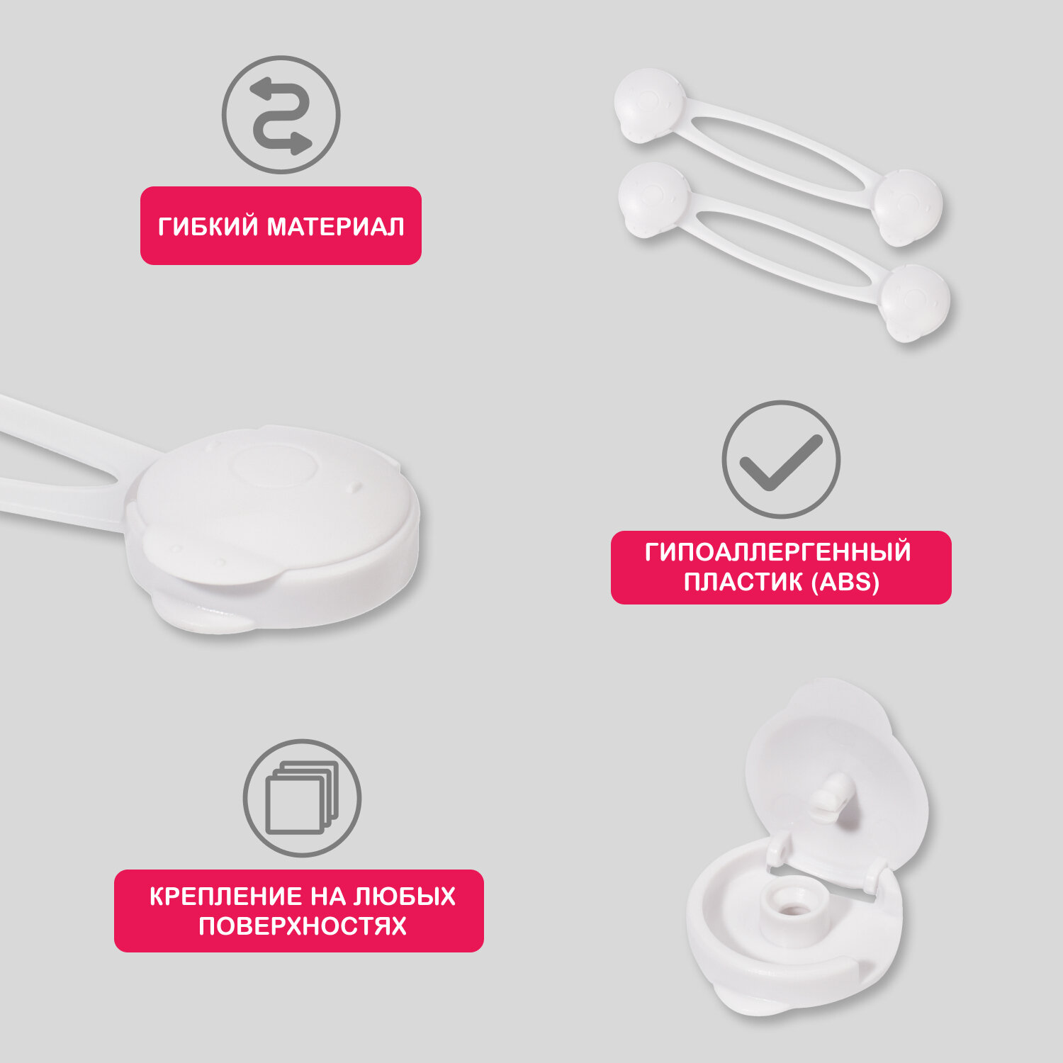 Универсальный гибкий блокиратор замок для шкафов HALSA защита от детей, 2 шт