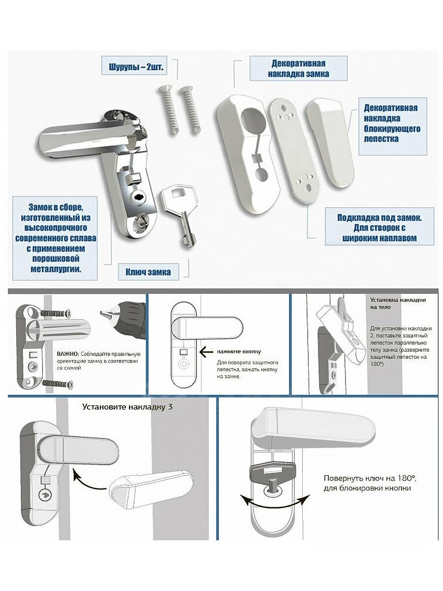 | Комплектация | блокиратор, ключ, саморезы для крепления к окну |
