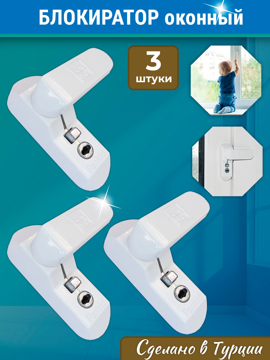 Купить Лот 3 шт: Замок - блокиратор Оконный Penkid Sash Lock белый