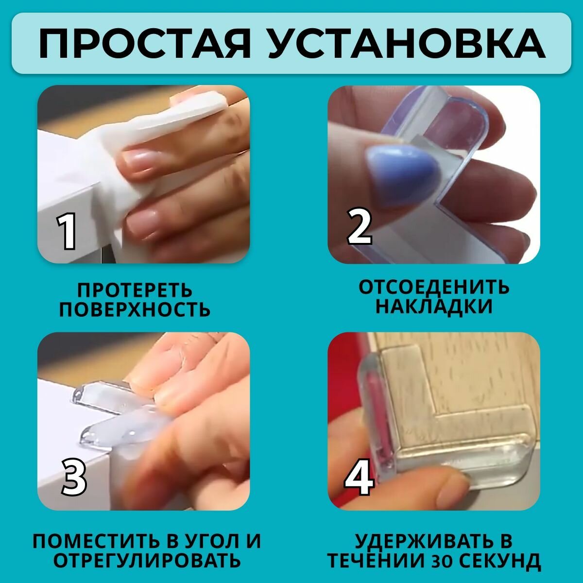 Уголки на мебель защитные, защита на углы для детей, демпферы силиконовые 4 шт в комплекте интересное: