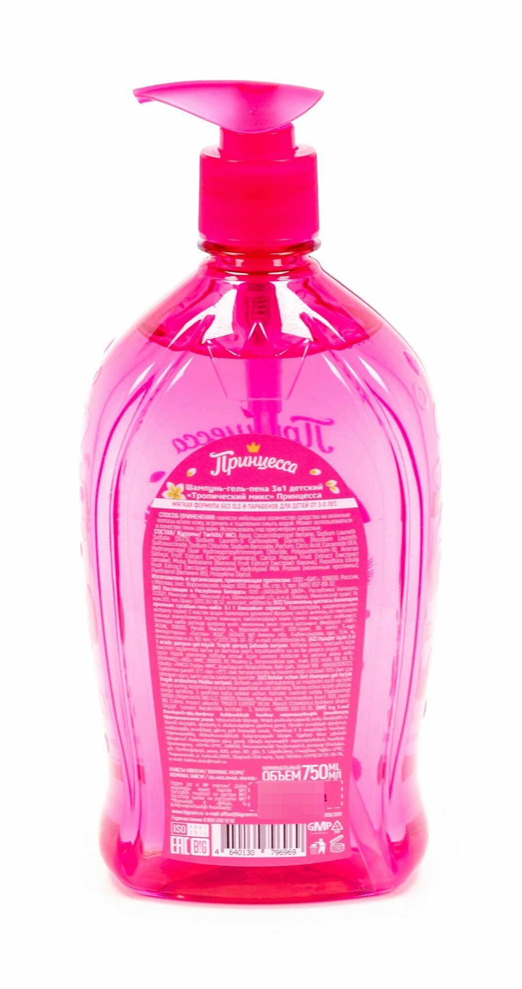 Шампунь-гель-пена 3в1, "Принцесса", детский, Тропический микс, 750 мл
