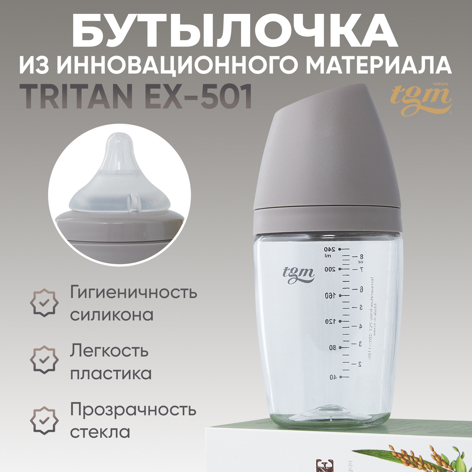 Бутылочка для кормления TGM Rice Grain Tritan 240 мл warm grey интересное: