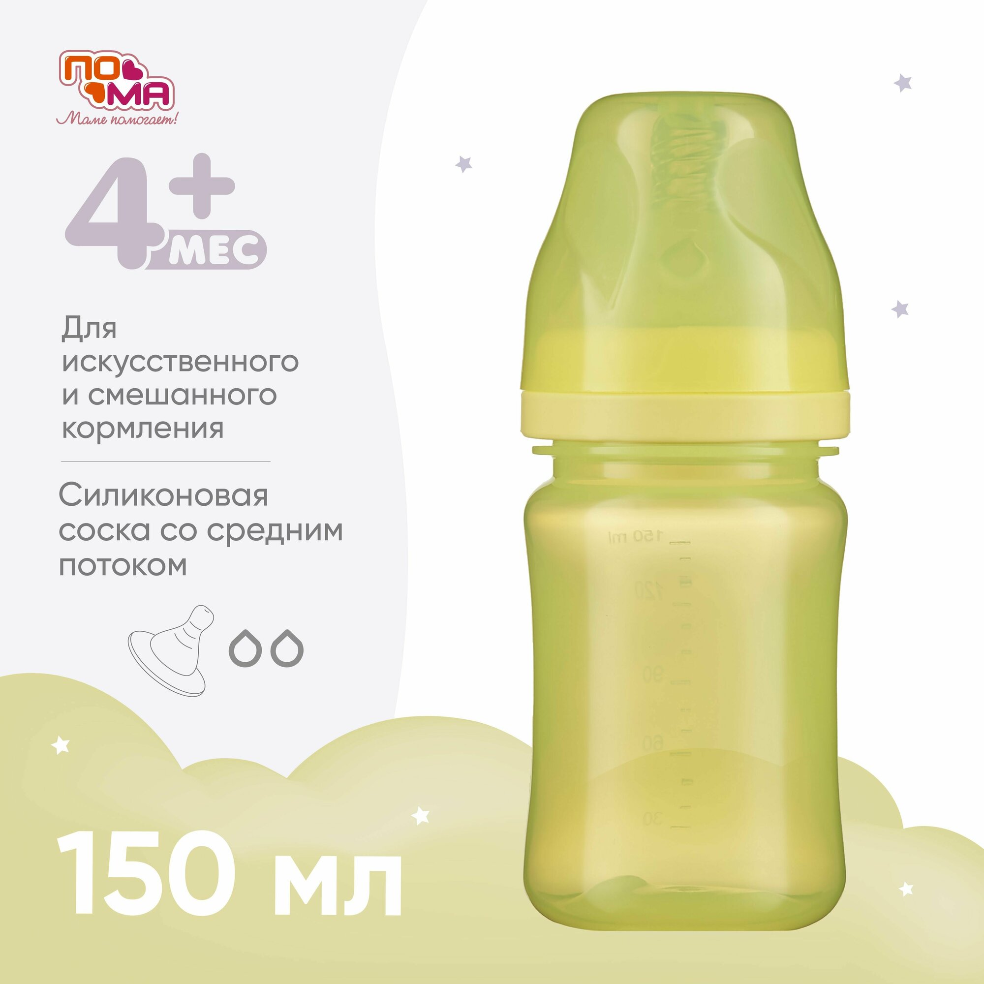 Купить Бутылочка пома для кормления новорожденных 4 мес+ 150 мл 1 шт.