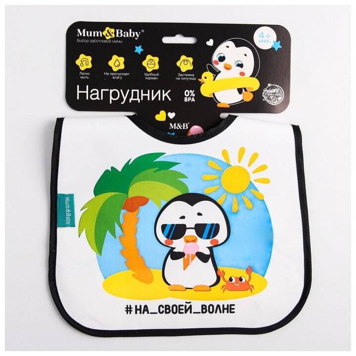 Нагрудник для кормления M&B «ТРЕНД. Персонажи» непромокаемый на липучке, с карманом, цвет МИКС