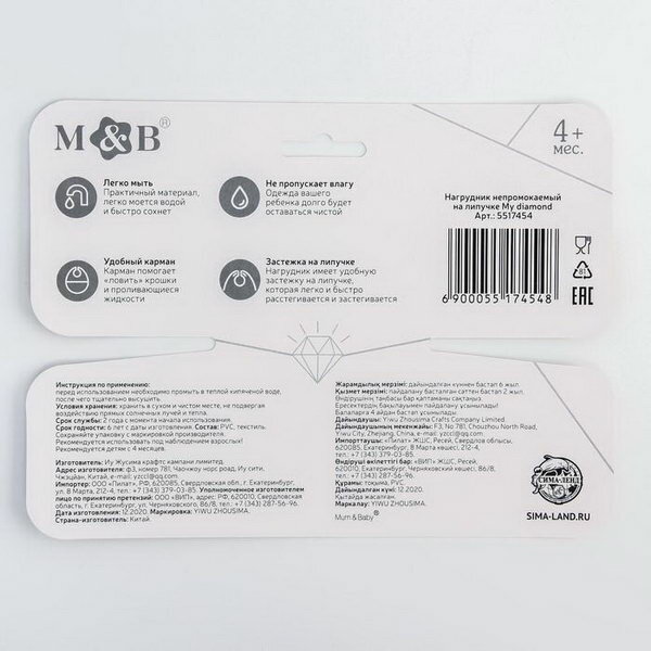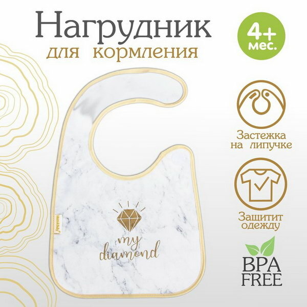 Нагрудник для кормления "My diamond" непромокаемый на липучке, с карманом интересное: