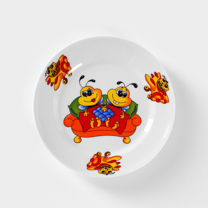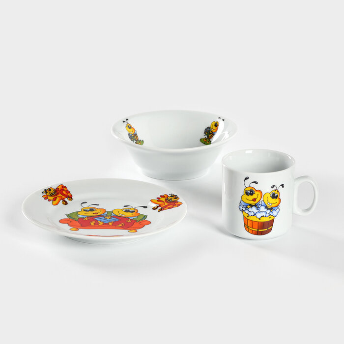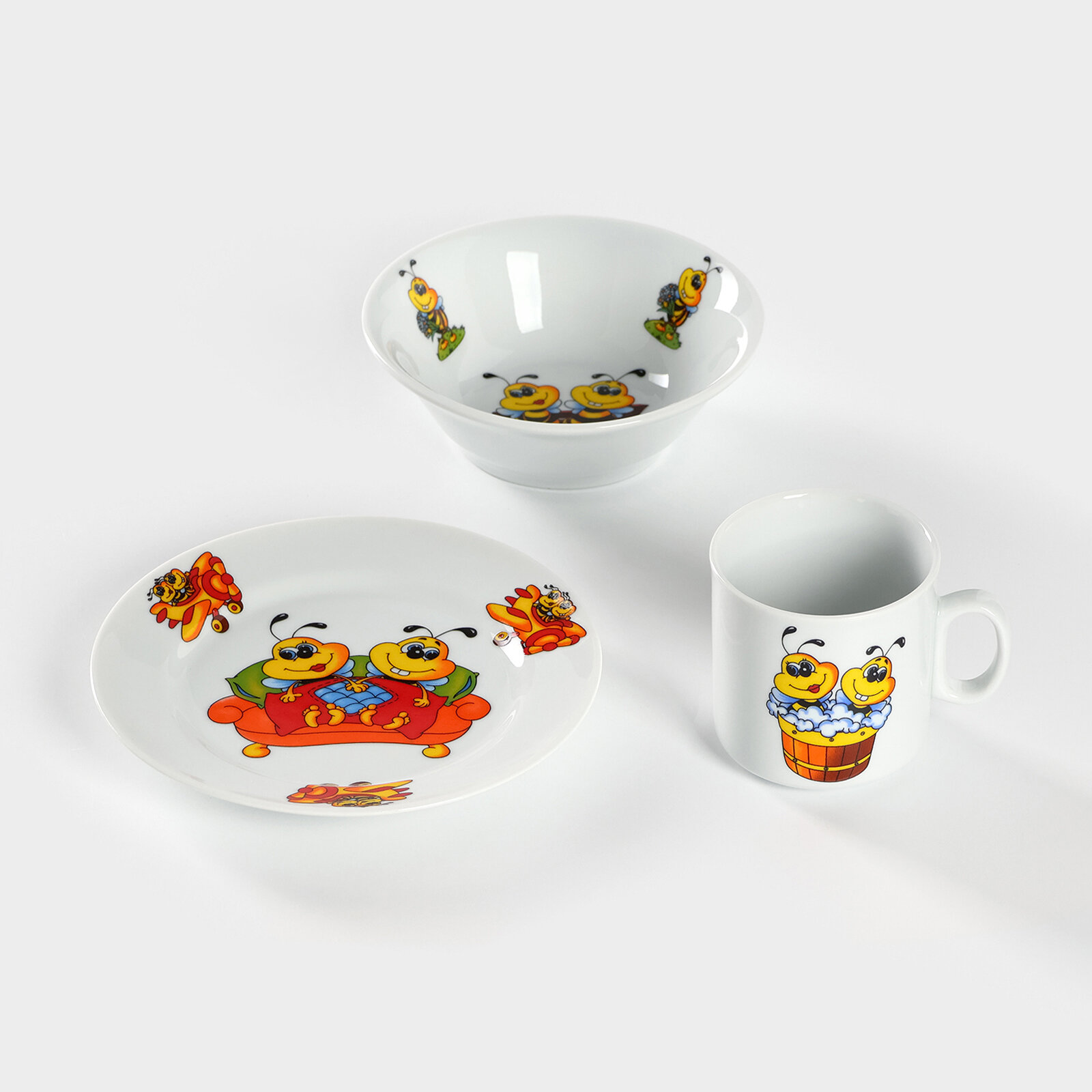 Набор фарфоровой посуды «Пчёлы», 3 предмета: кружка 200 мл, салатник 350 мл, тарелка мелкая d=16,5 см, рисунок микс интересное:
