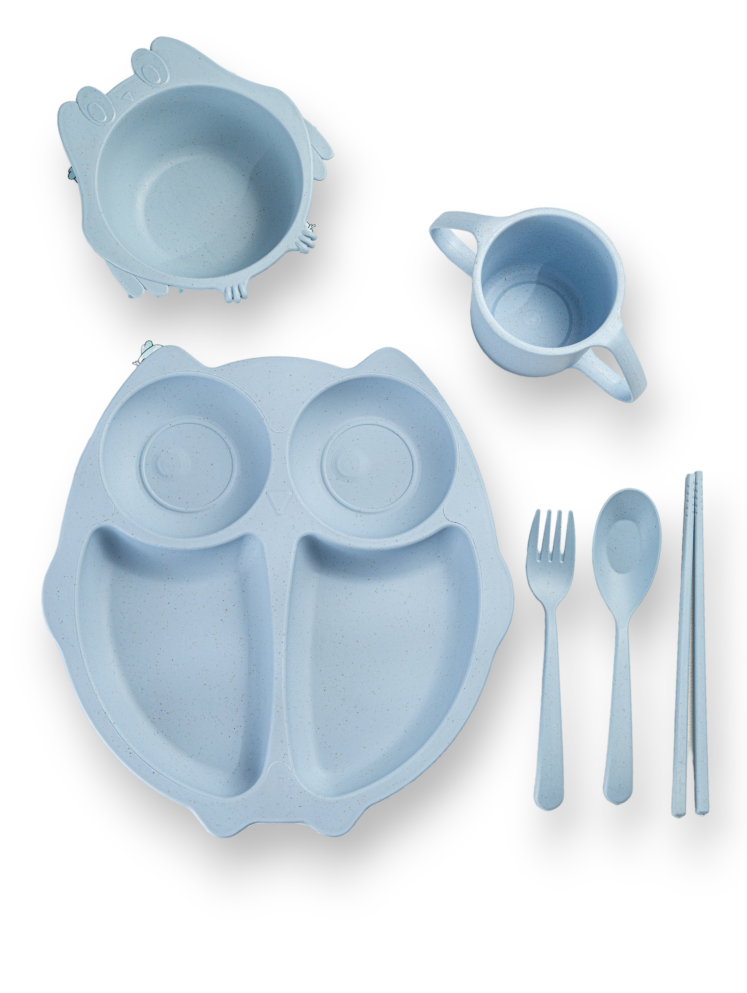 Купить Детская посуда Набор Совёнок детская тарелка, ложка, вилка, кружка, голубой