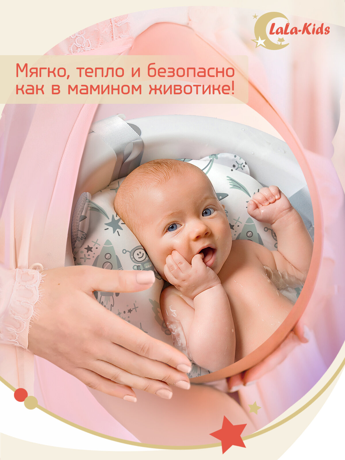 Купить Ванночка складная с термометром для купания новорожденных LaLa-Kids, матрасик-горка для купания Космос