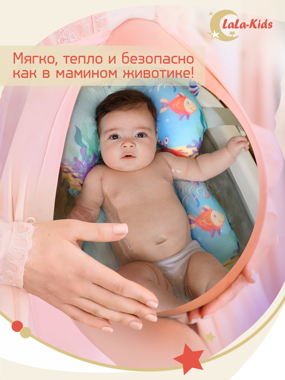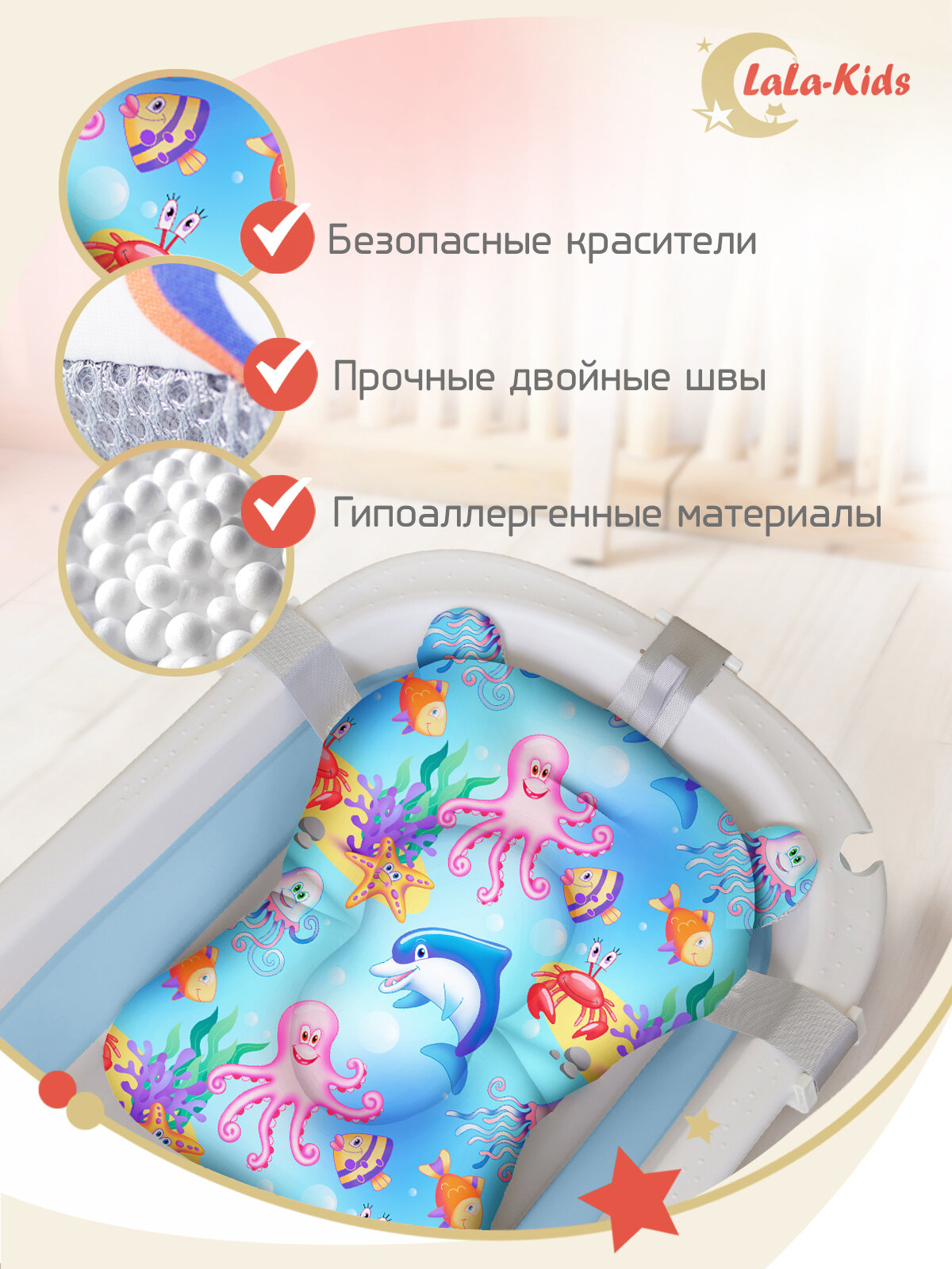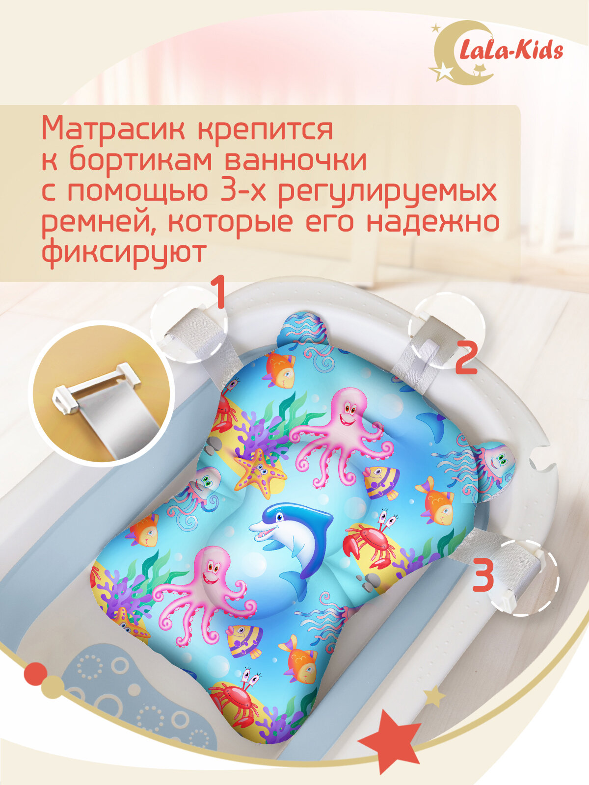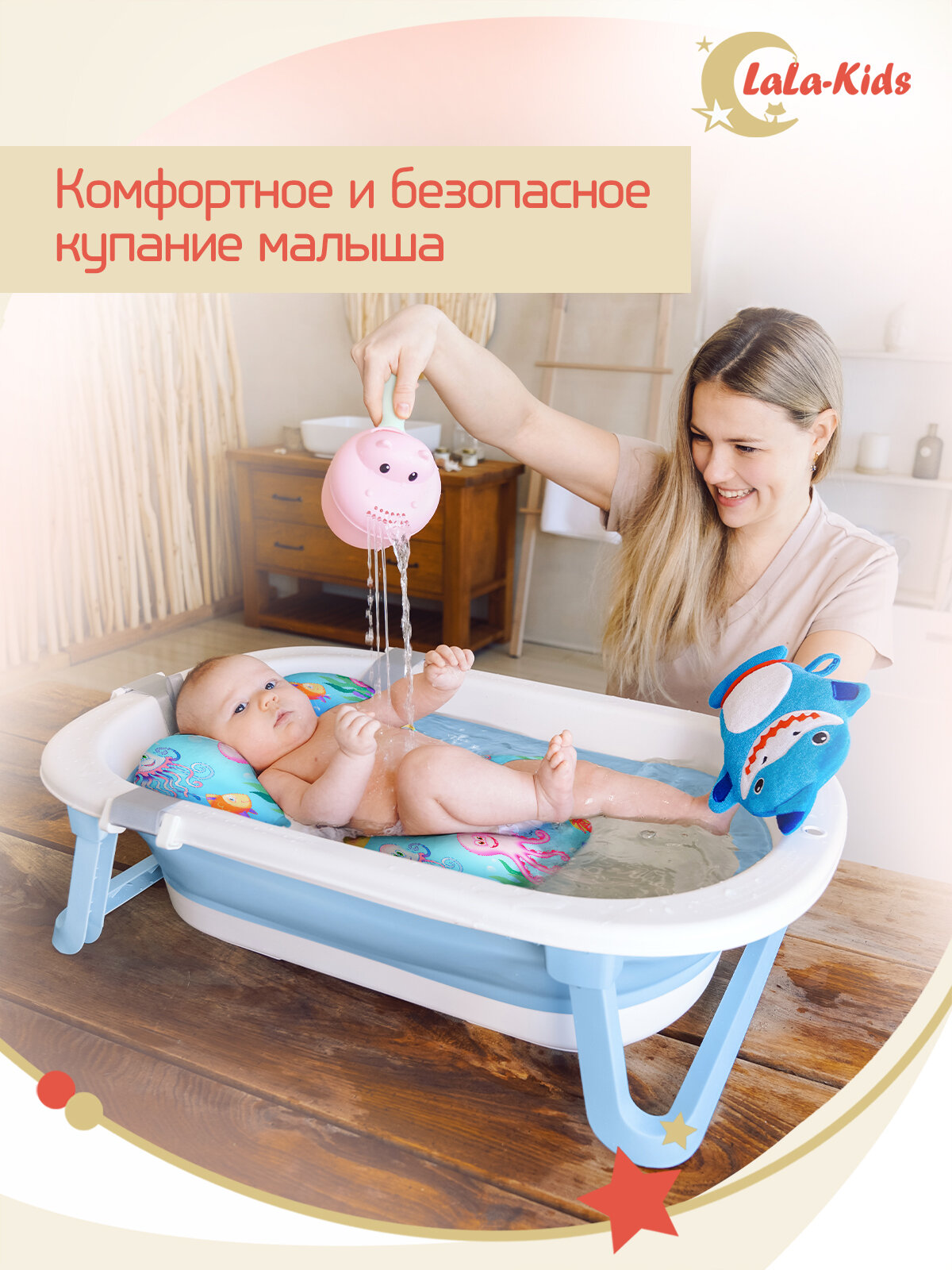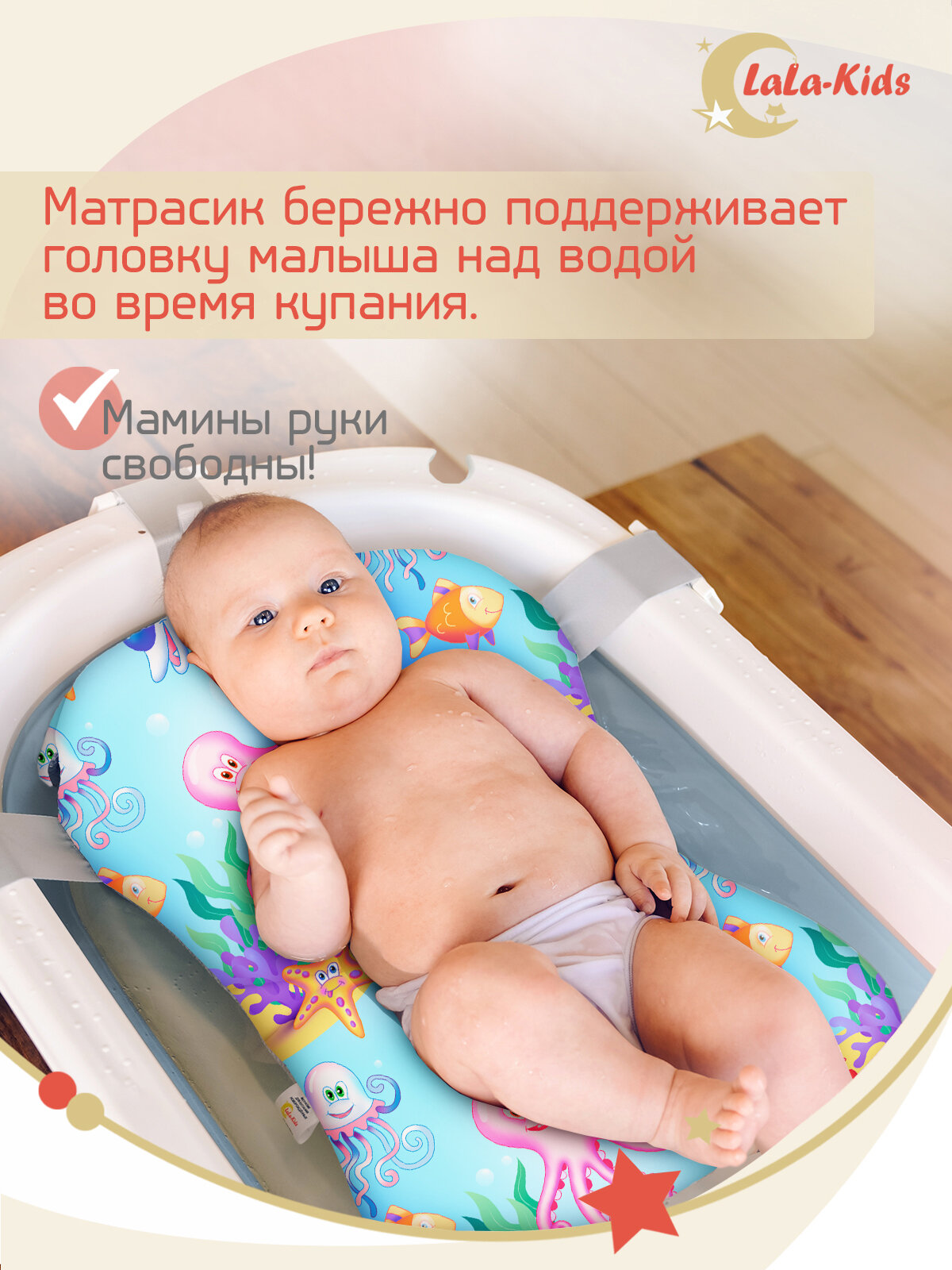 СохранитьВанночка для купания новорожденных складная с термометром и матрасом "Подводный мир" LaLa-Kids голубая интересное: