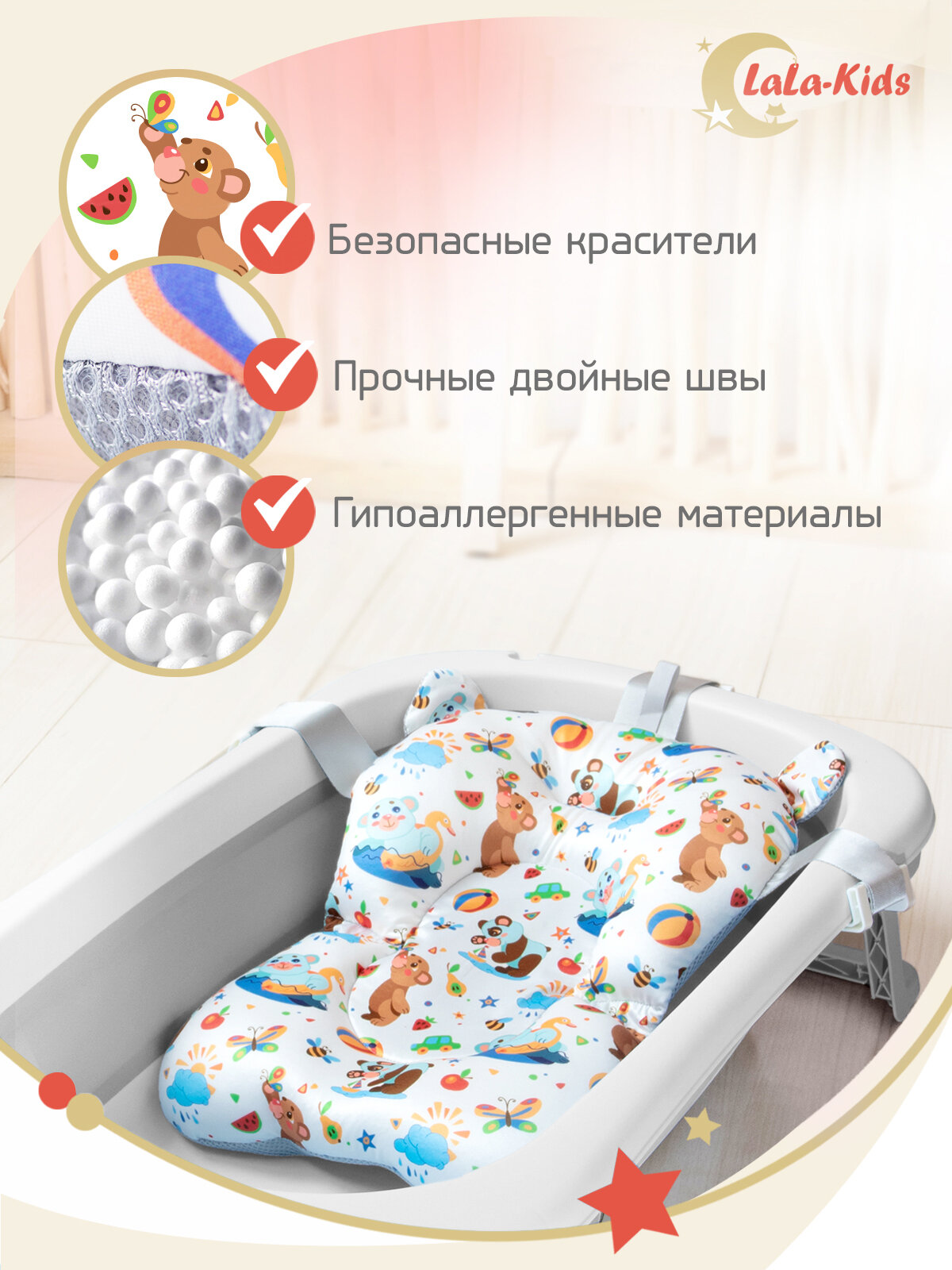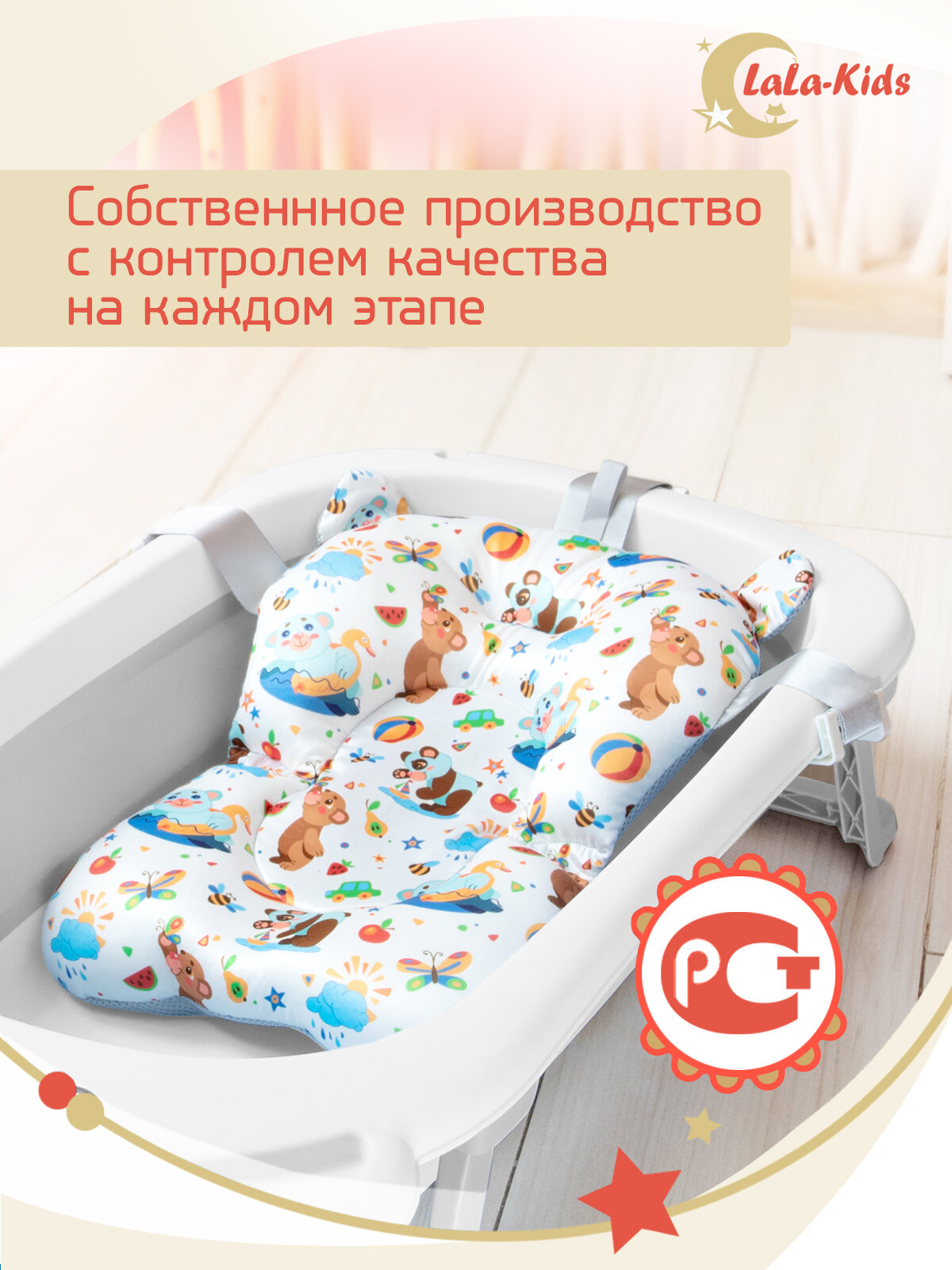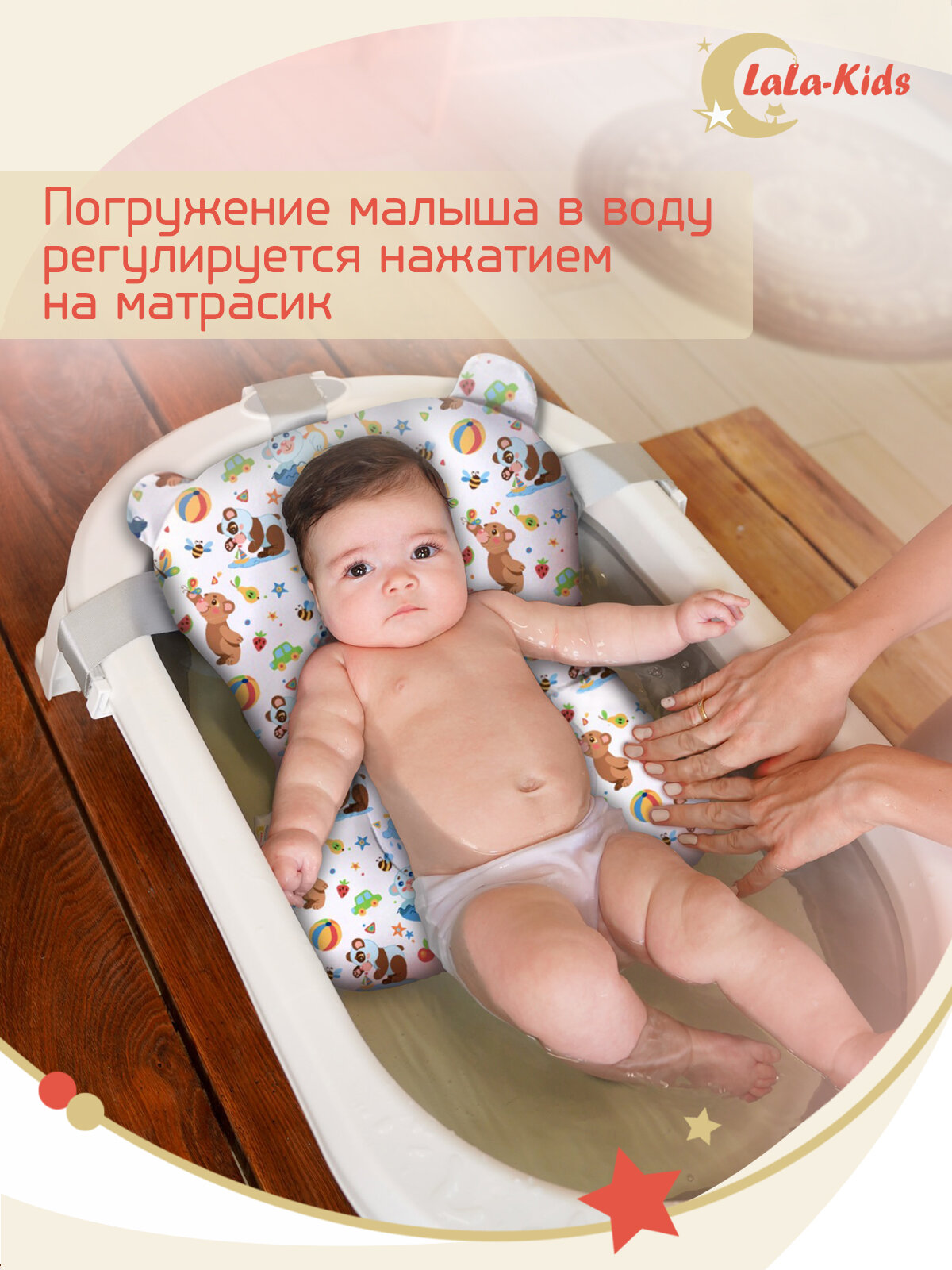 Купить Ванночка складная с термометром для купания новорожденных LaLa-Kids, матрасик-горка для купания Медвежата