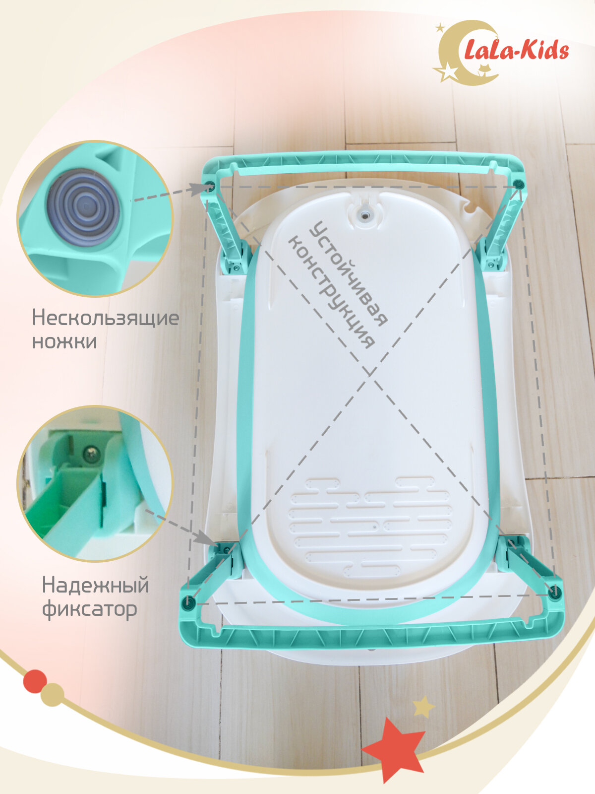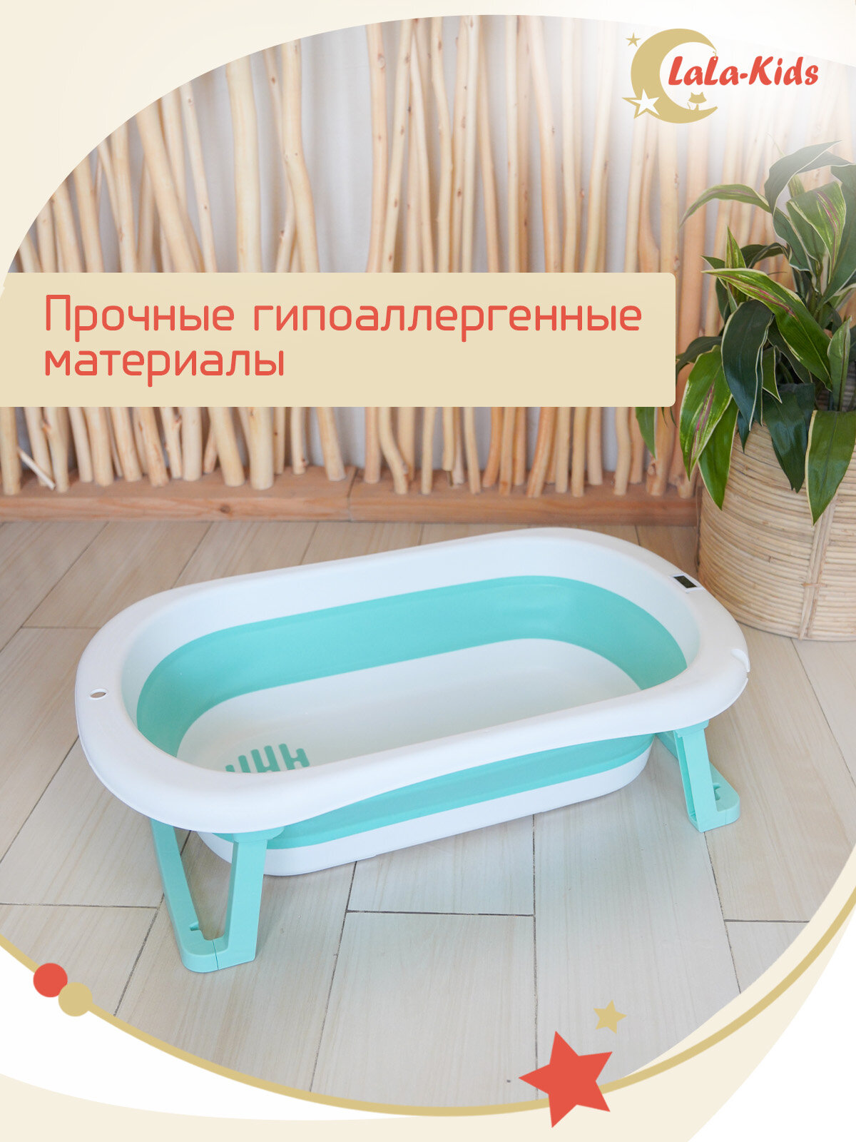 Купить Ванночка для купания новорожденных складная с термометром и матрасом LaLa-Kids мятная