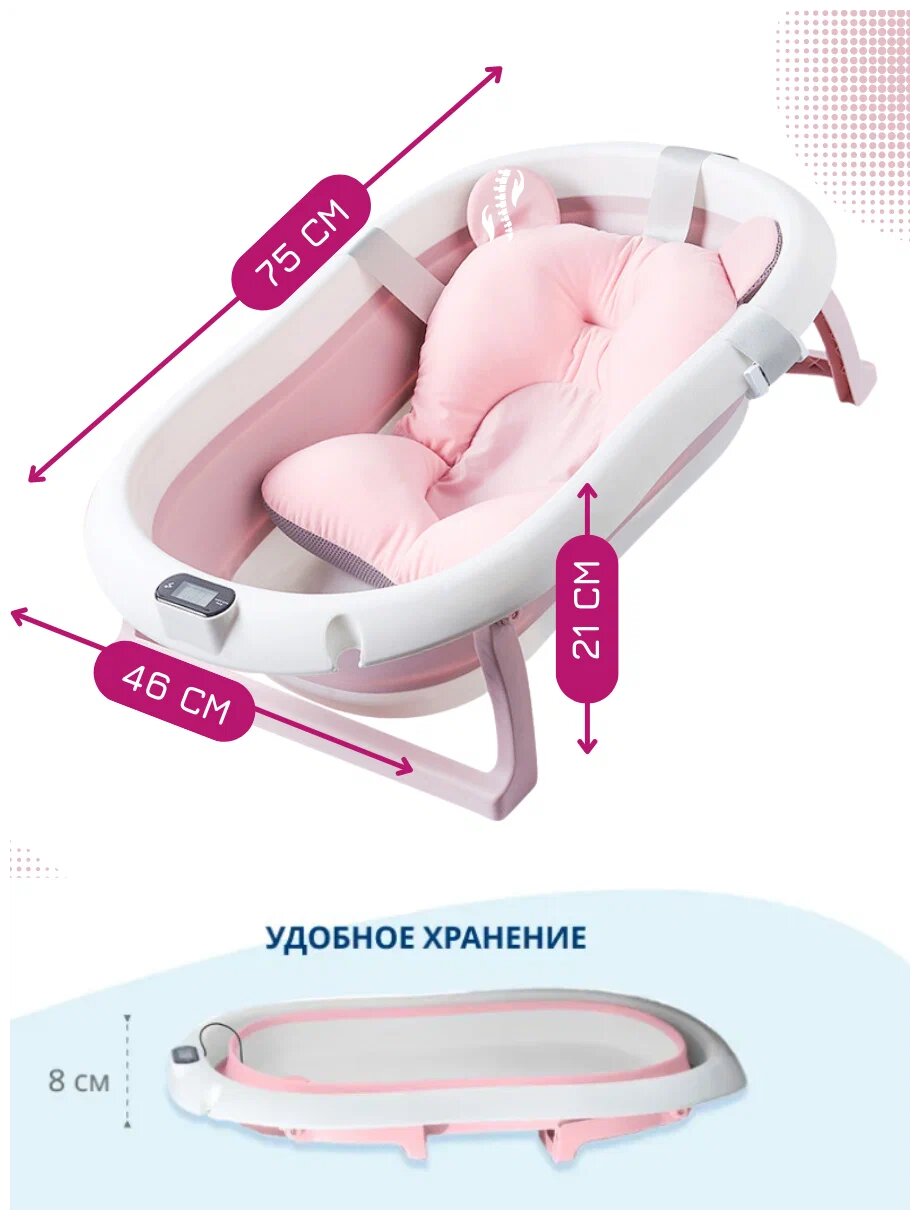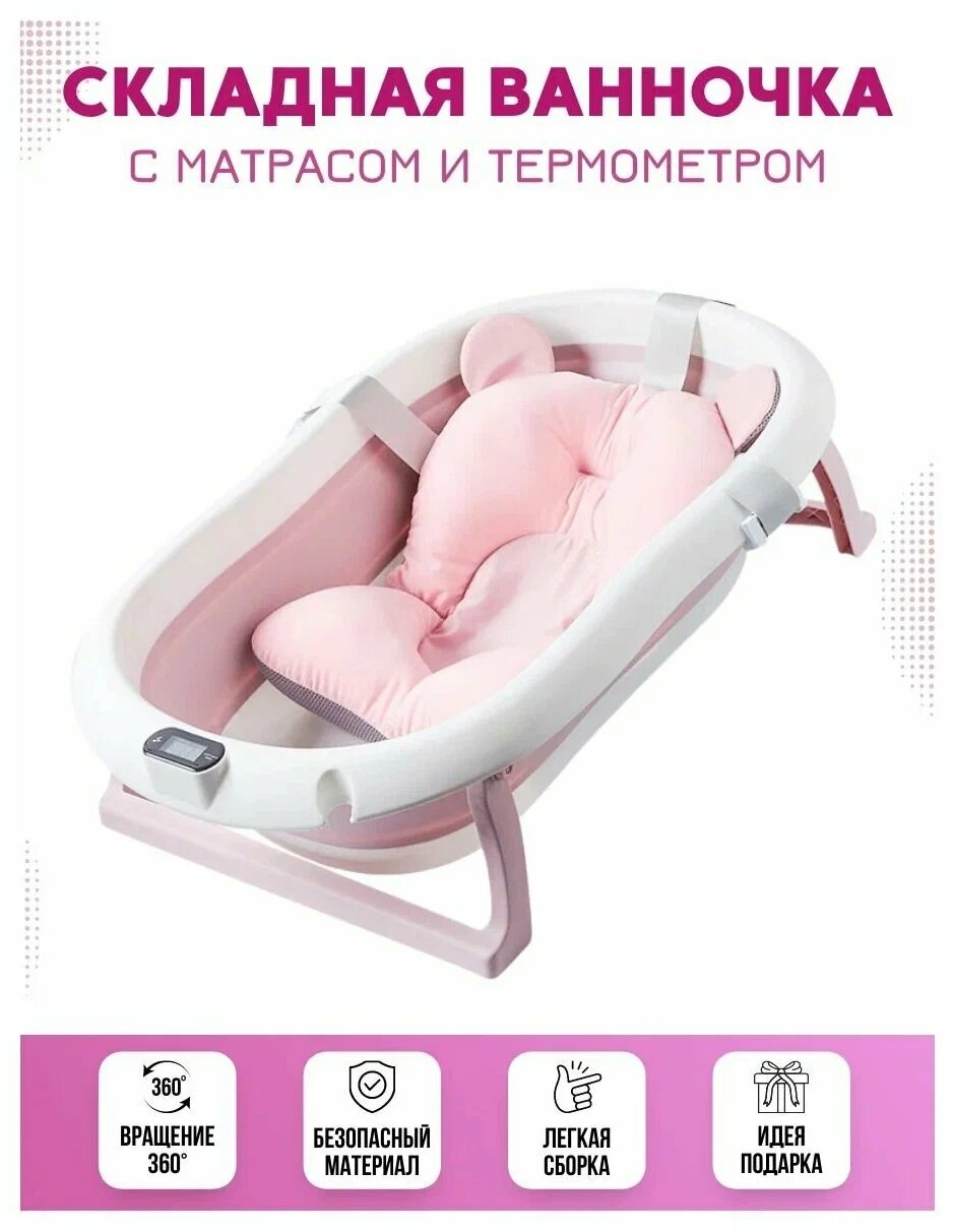 Купить Ванночка для купания новорожденных детей, складная детская, с термометром и матрасиком, для мальчиков и девочек