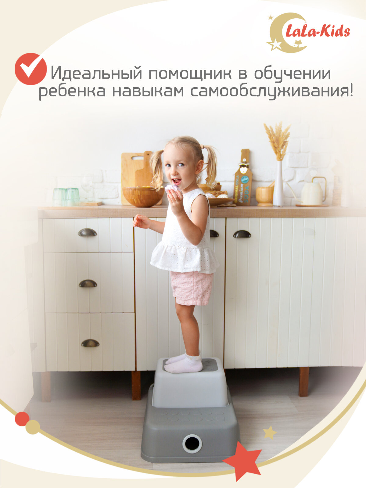 Подставка для ног детская в туалет и ванную ступенька LaLa-Kids темно-серый интересное: