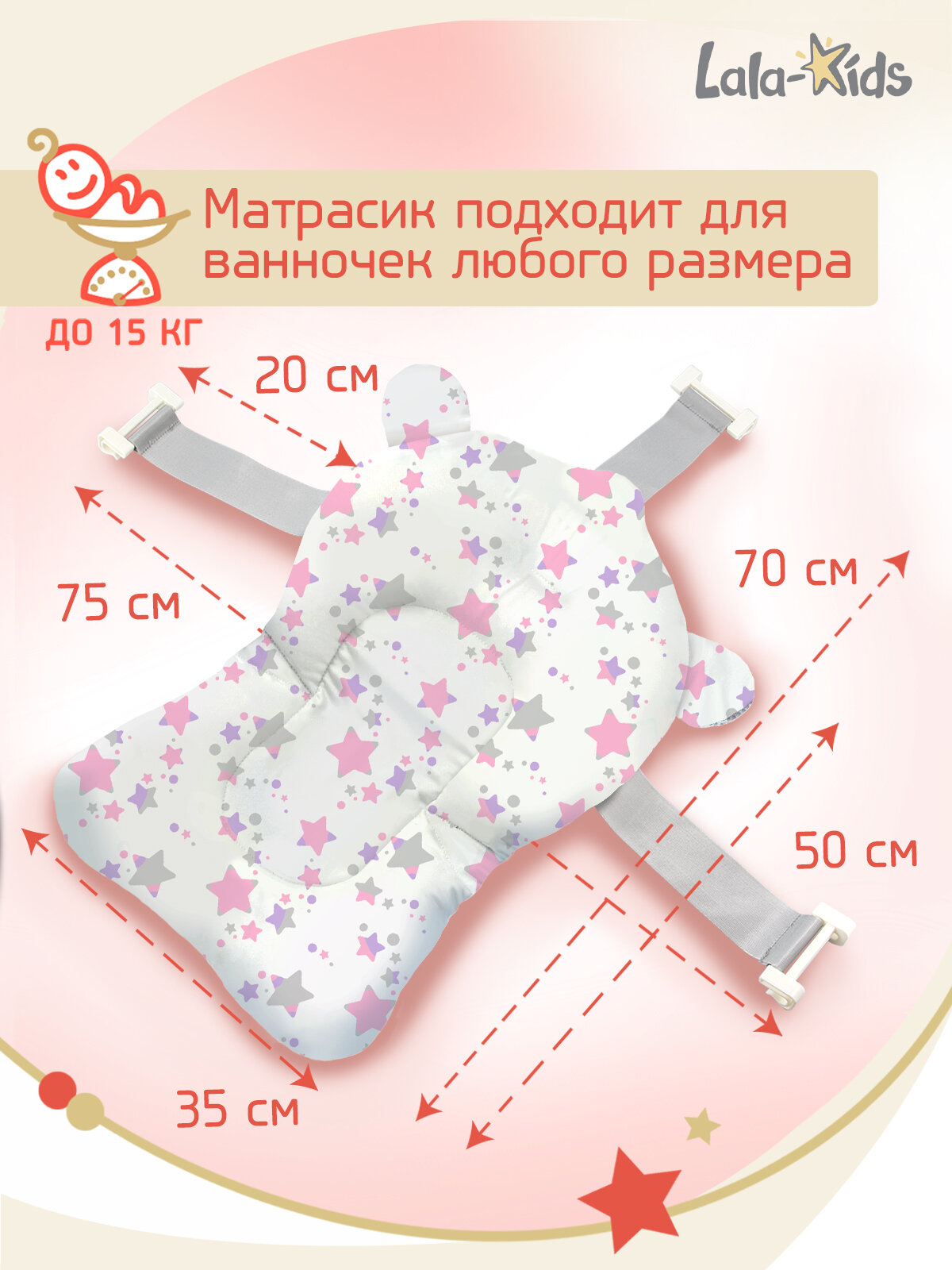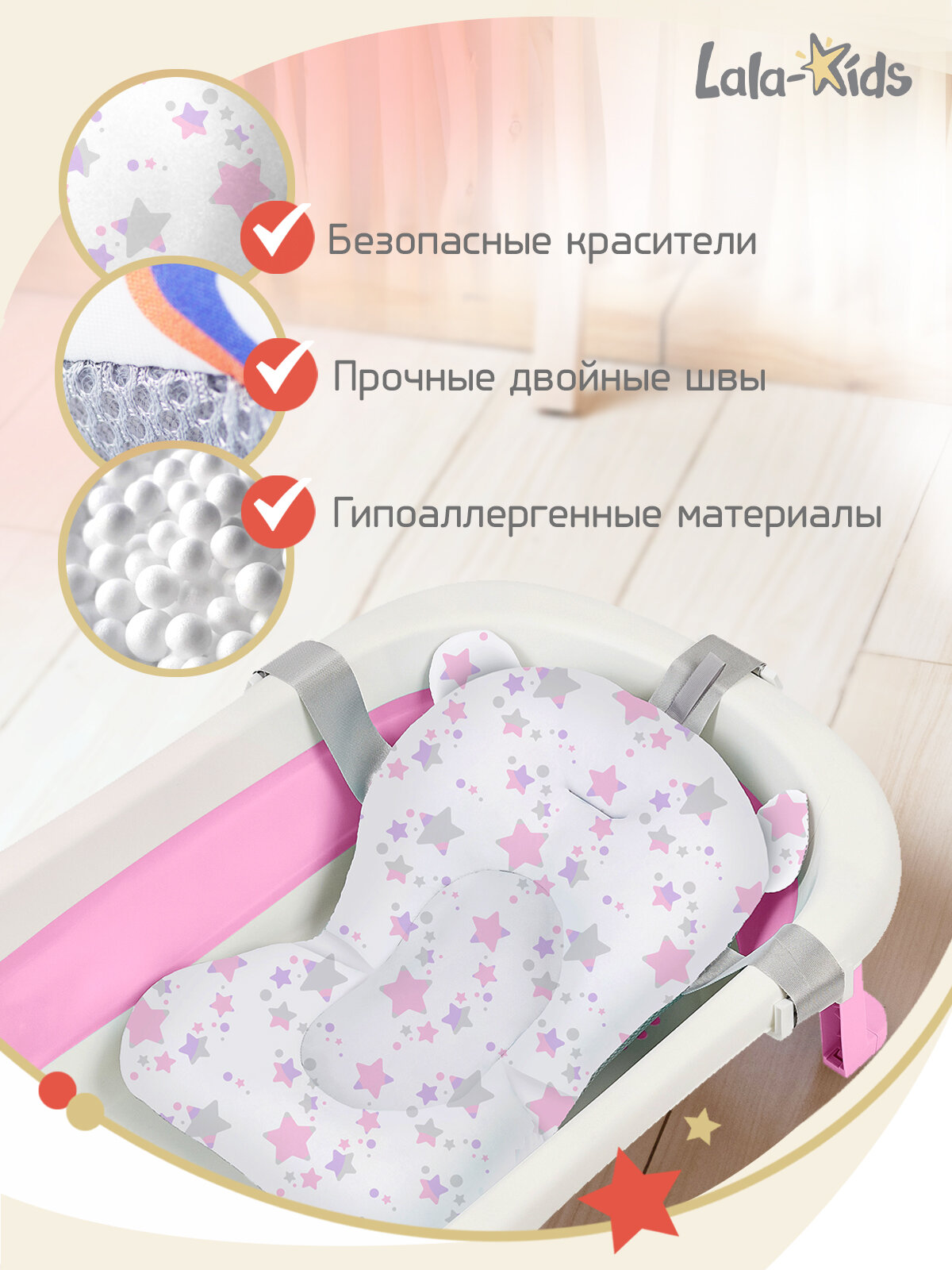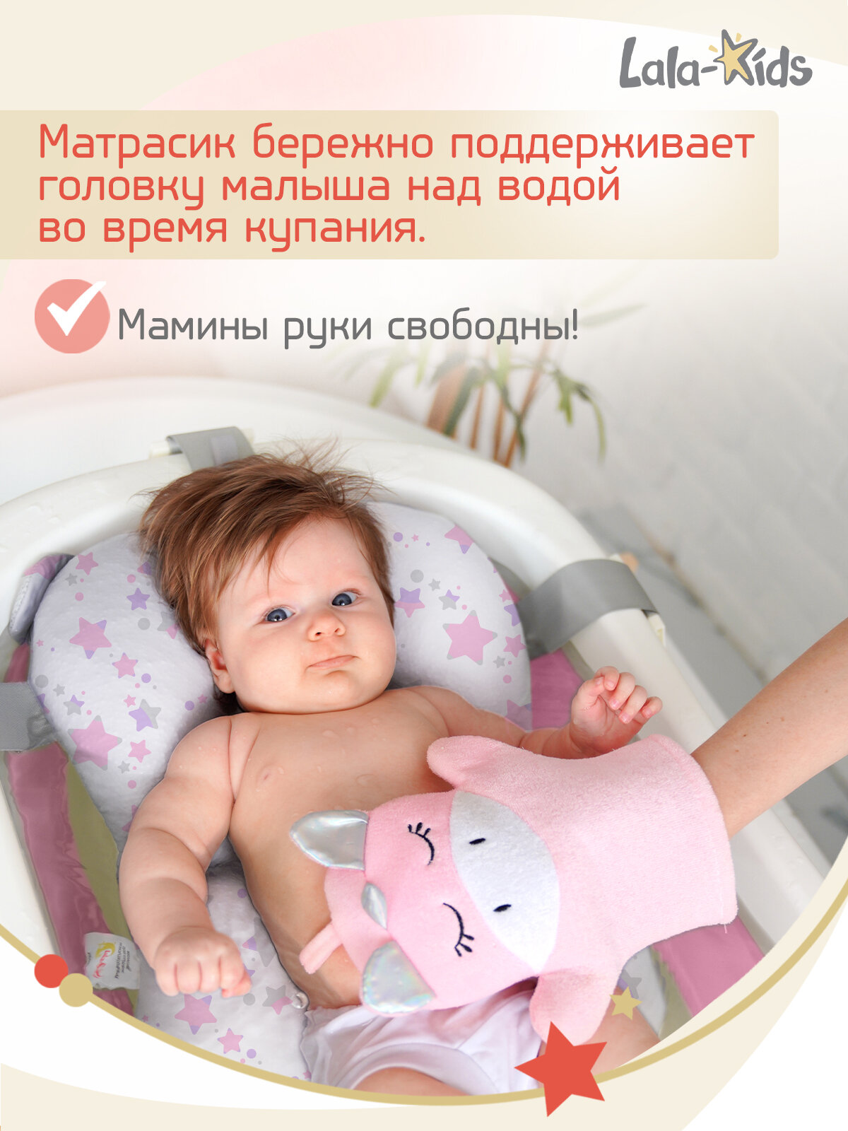 Горка для купания новорожденных LaLa-Kids матрасик Звезды розовые интересное: