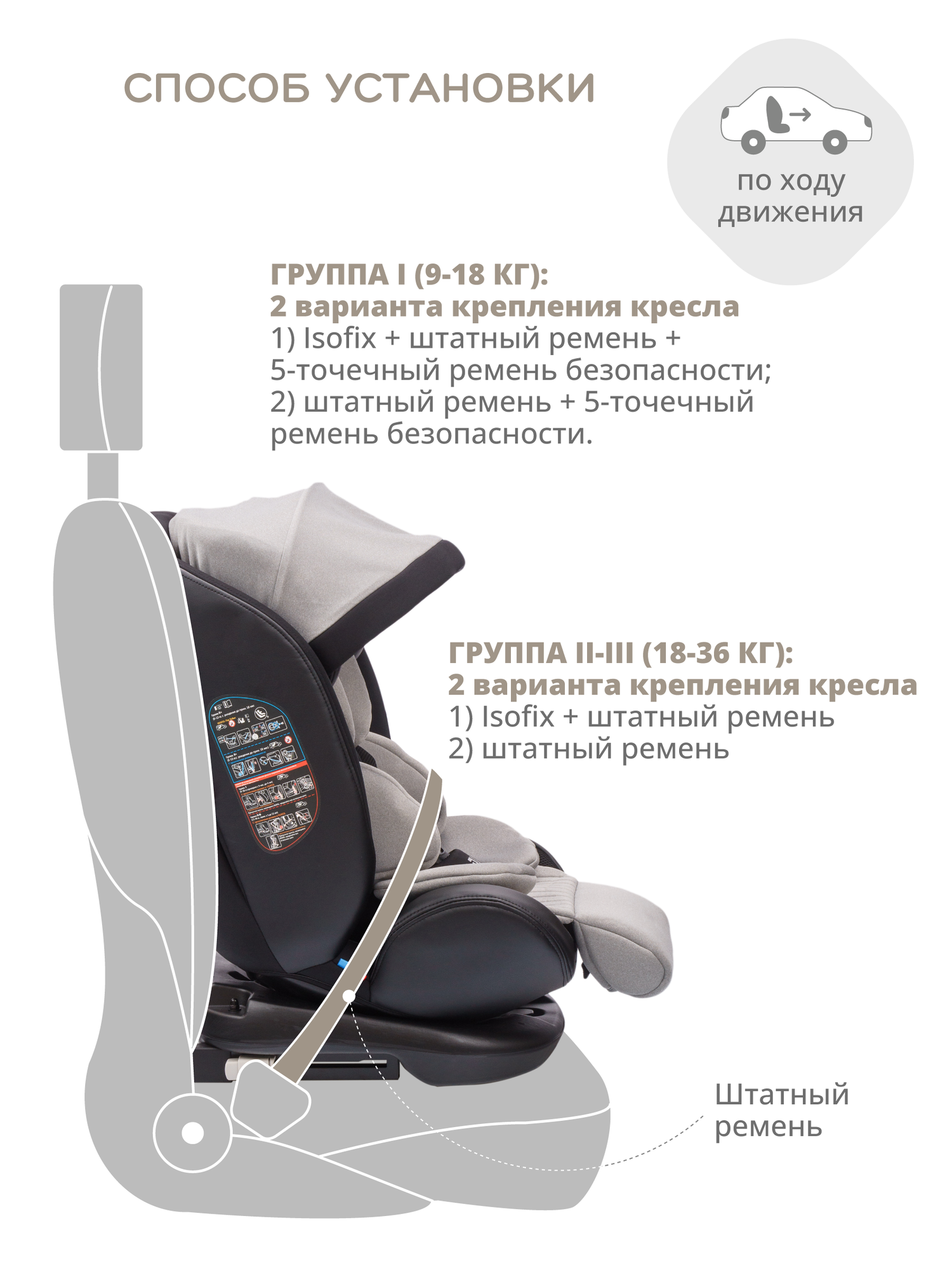 | Установка | спиной или лицом вперед |