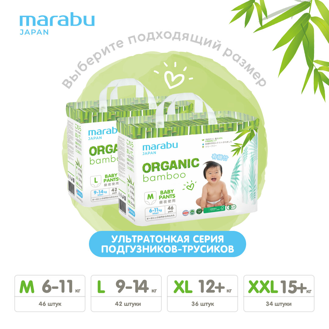 Подгузники-трусики MARABU Organic bamboo, XXL (15+ кг), 34 шт интересное: