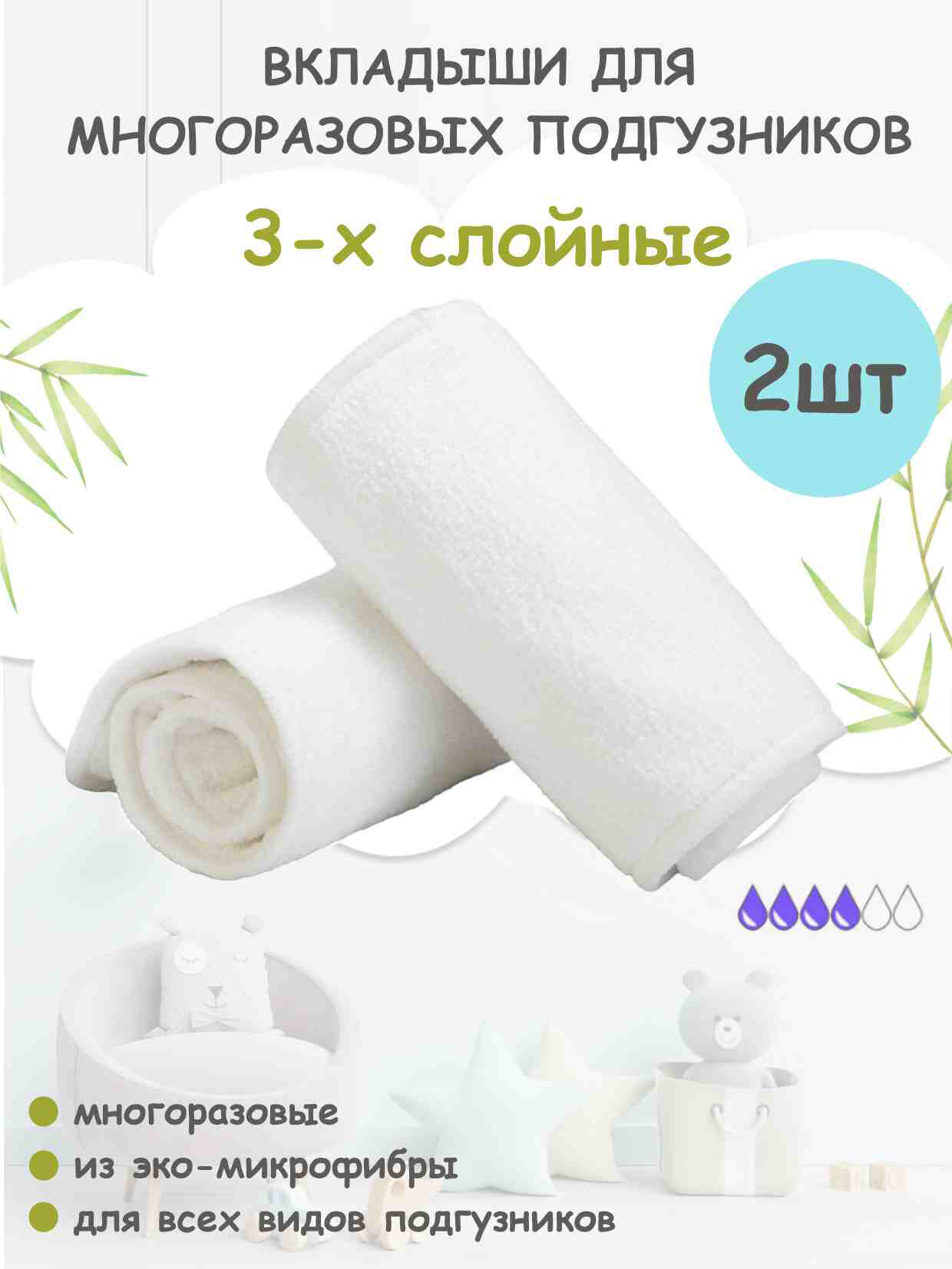 | Комплектация | Вкладыши для многоразовых подгузников - 2 шт. |