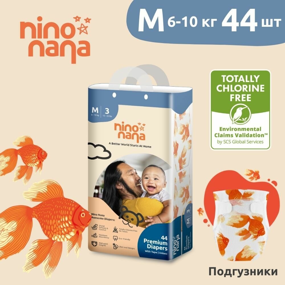 Купить Подгузники Nino Nana M 6-10 кг. 44 шт. Рыбки