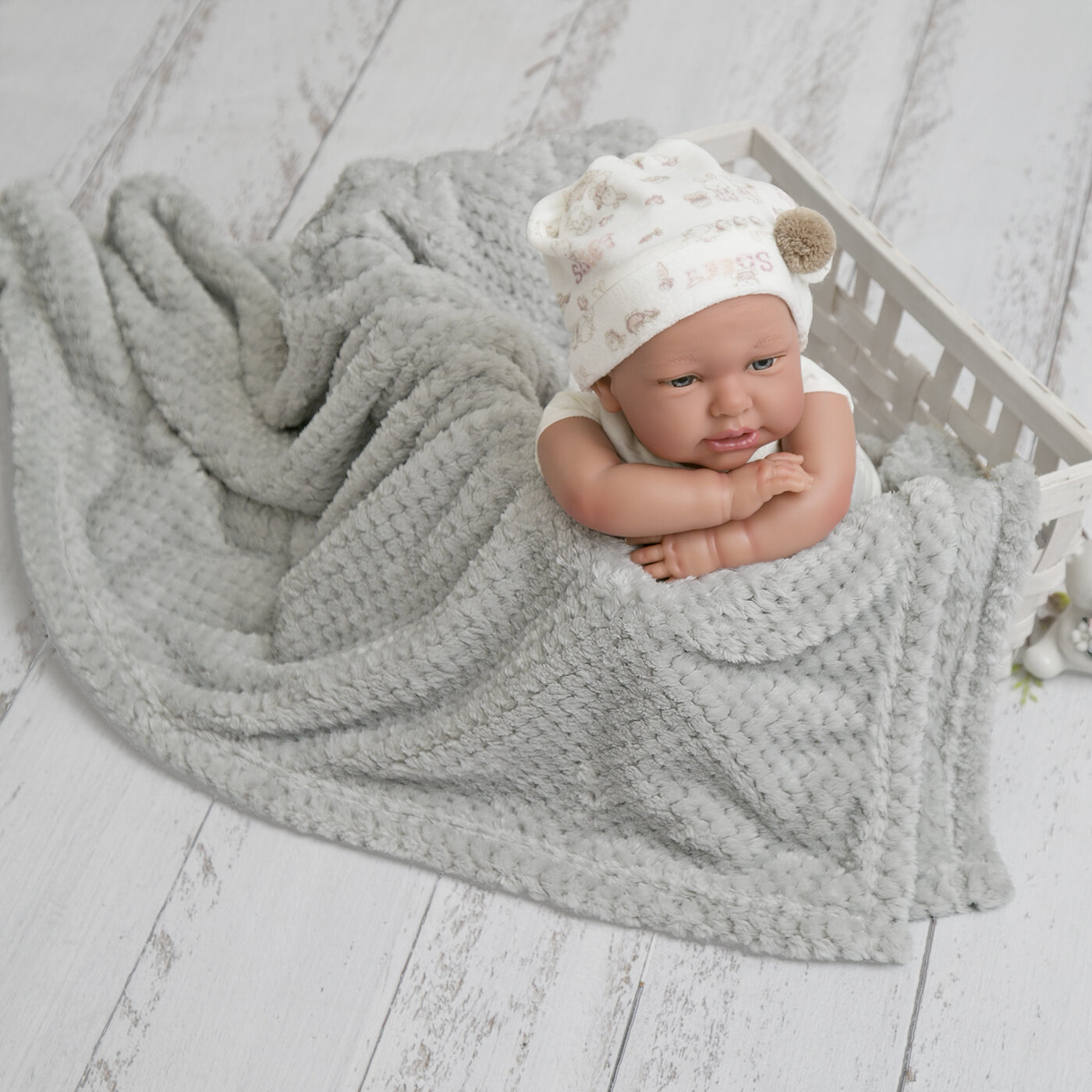 Плед для новорожденных плюшевый 100х118 см, на выписку. Плед детский серый "Жаккард"