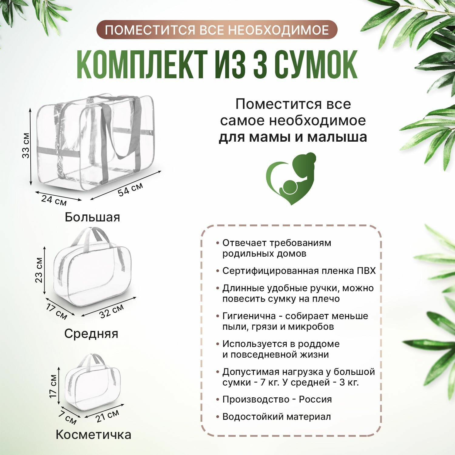 Готовая сумка в роддом для мамы и малыша собранная прозрачная серая "ЭКО" интересное: