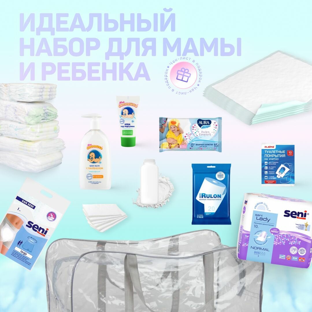 Купить Сумка в роддом готовая для мамы и малыша с наполнением, 13 предметов + 1 прозрачнаясумка, комплектация "Мини"